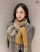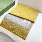 SCARF 195 CM IN DIJON YELLOW AND KHAKI BROWN CASHMERE 401403