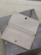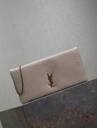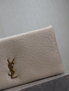 CALYPSO POUCH 24 IN WHITE ELEPHANT TEXTURED LAMBSKIN GOLD LOGO