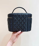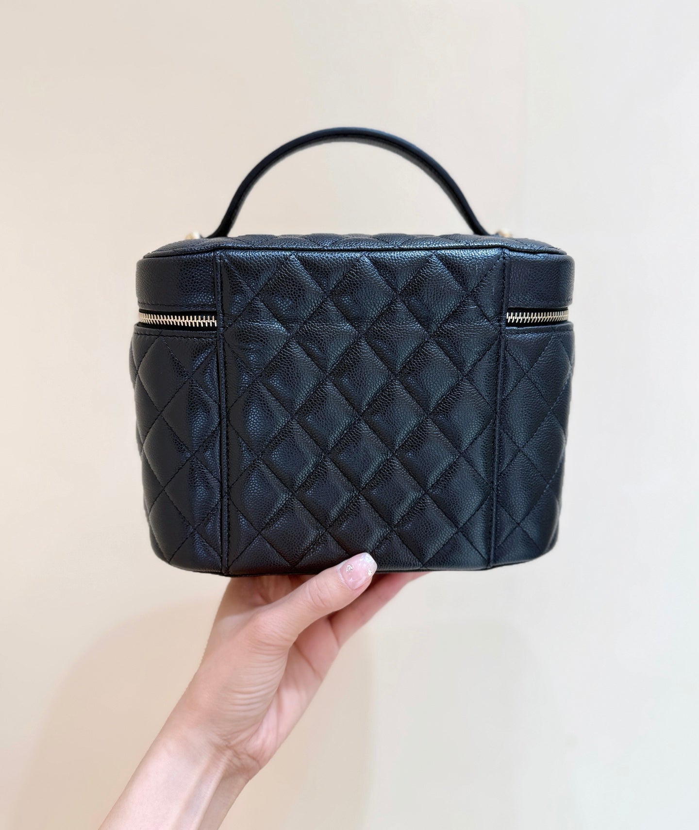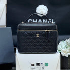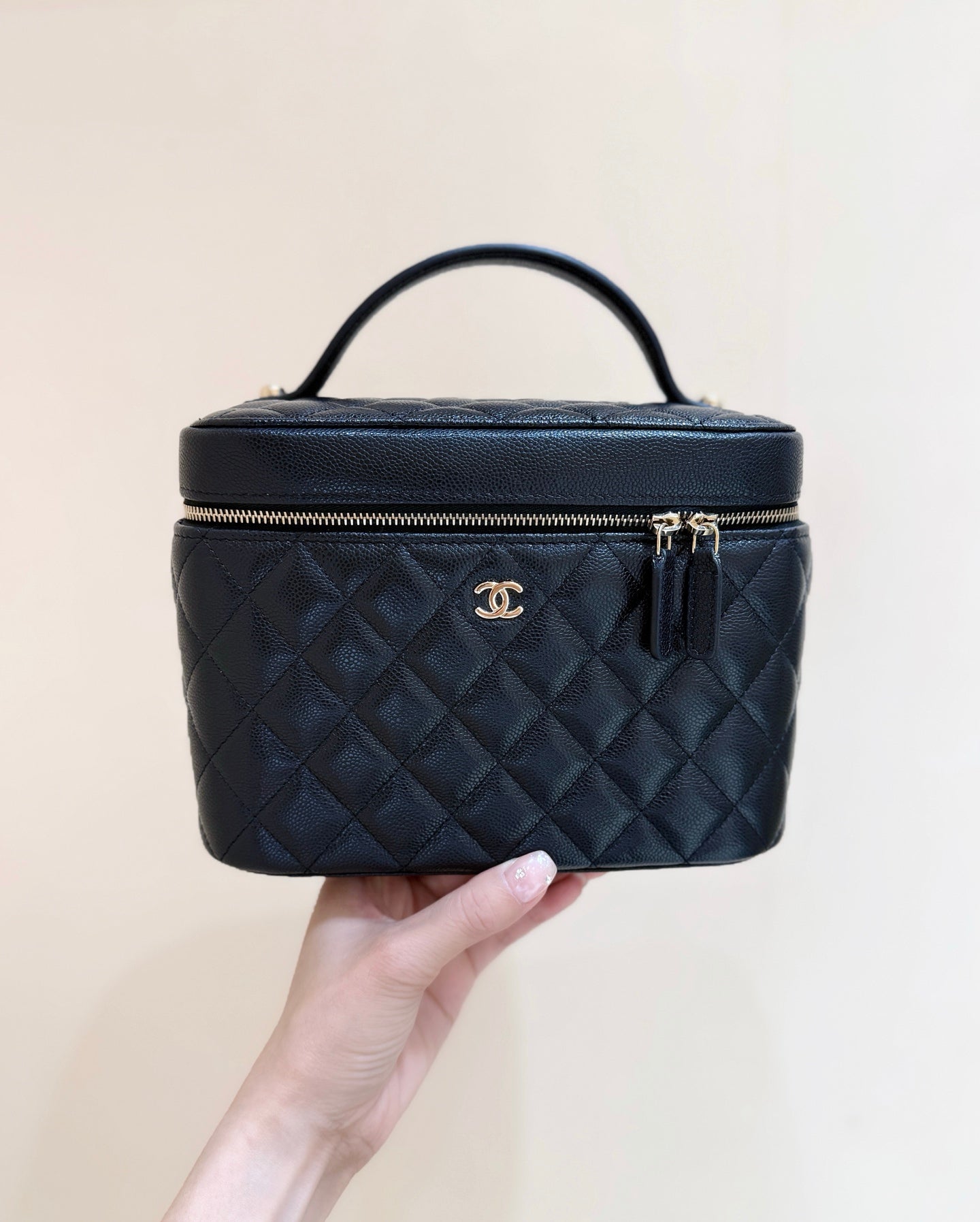 CC 25C Vanity Top Handle 21cm Black Grained Calfskin Light Gold Hardware