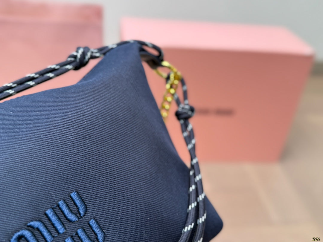 CHAIN SHOULDER BAG 18 IN BLACK FABRIC GOLD HARDWARE