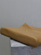 ENVELOPE CLUTCH 29 IN EARTHY YELLOW LAMBSKIN COPPER LOGO