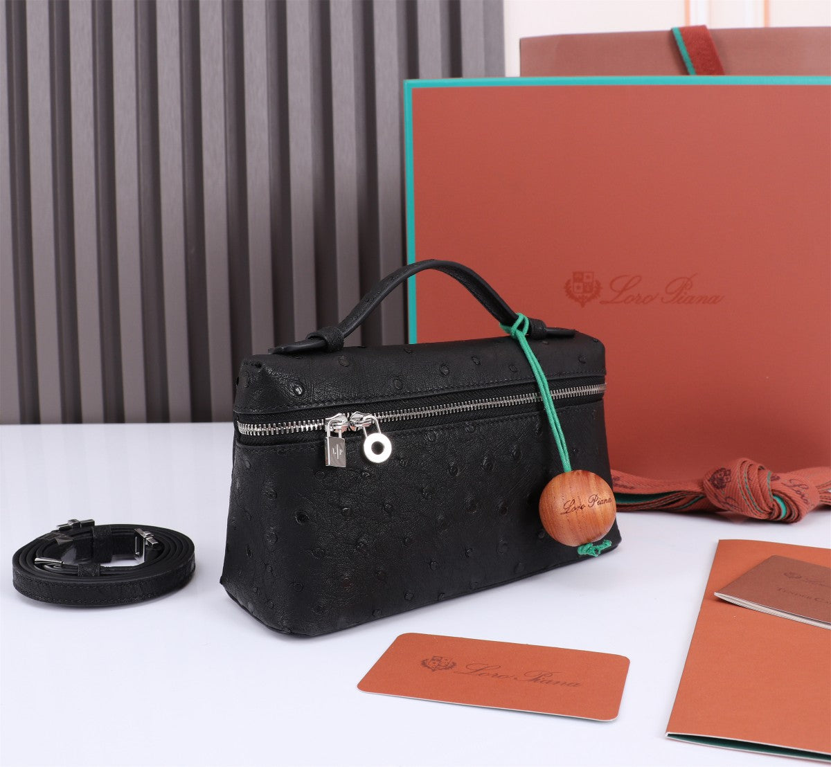 EXTRA POCKET L19 IN BLACK OSTRICH LEATHER