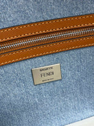 Fend Baguette Blue Brown Canvas Bag 27 with FF Embroidery Ghw