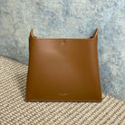 FLAT SHOULDER BAG 23 IN TAWNY BROWN CALFSKIN GOLD CHAIN