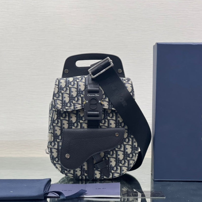 GALLOP SLING BAG 27 IN BEIGE MIX BLACK OBLIQUE JACQUARD AND CALFSKIN