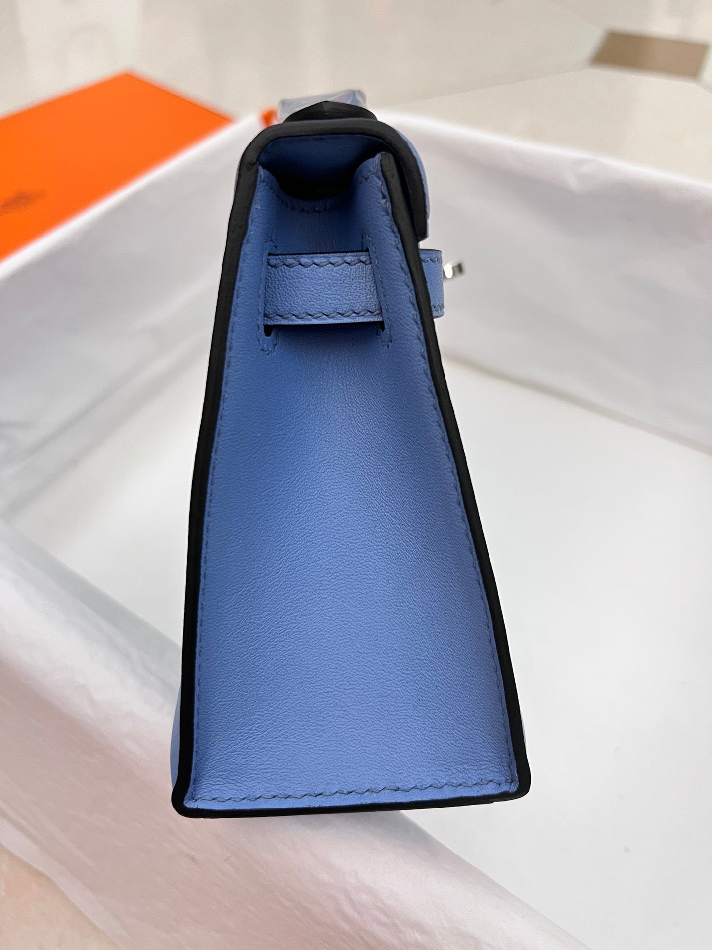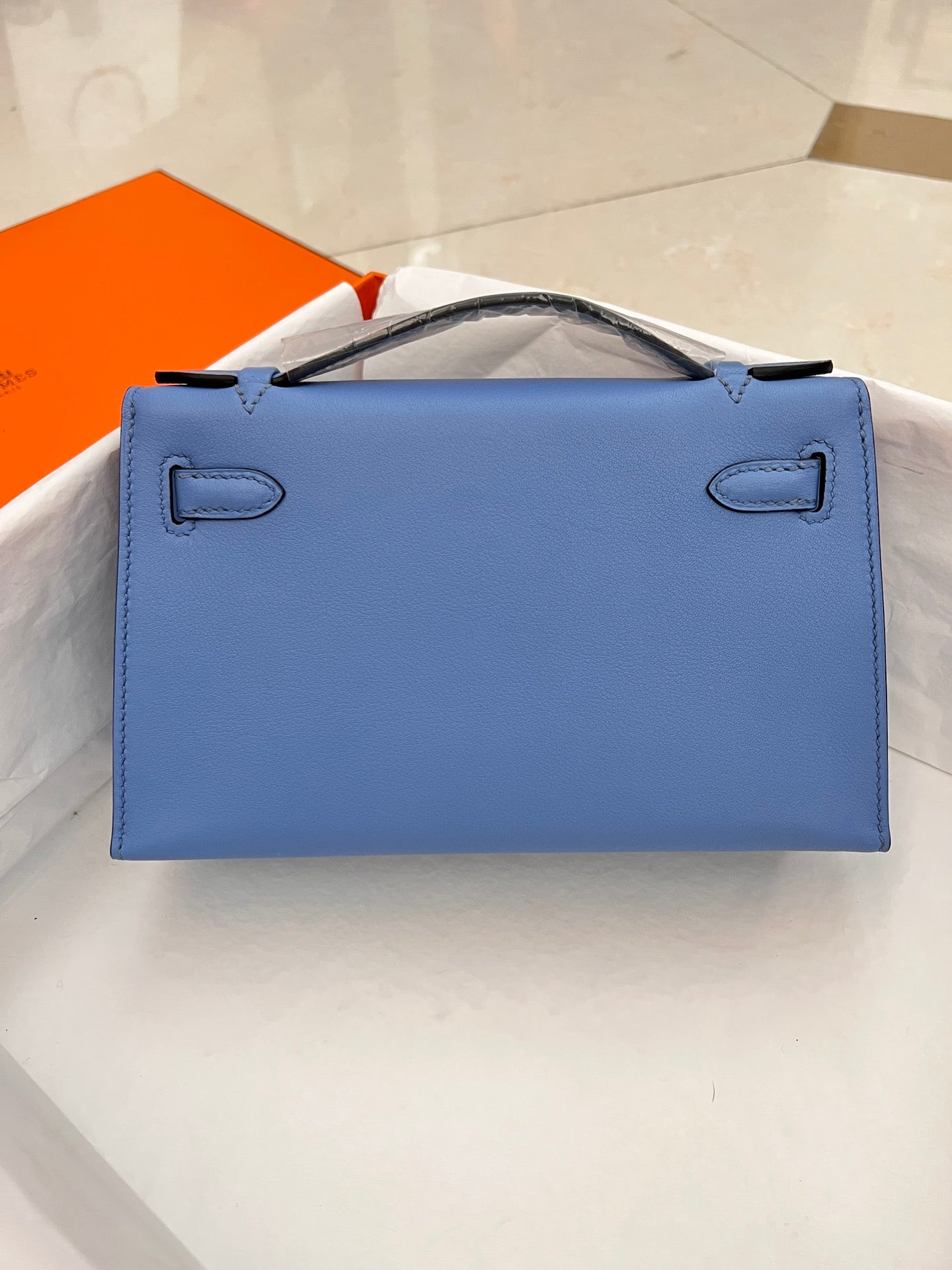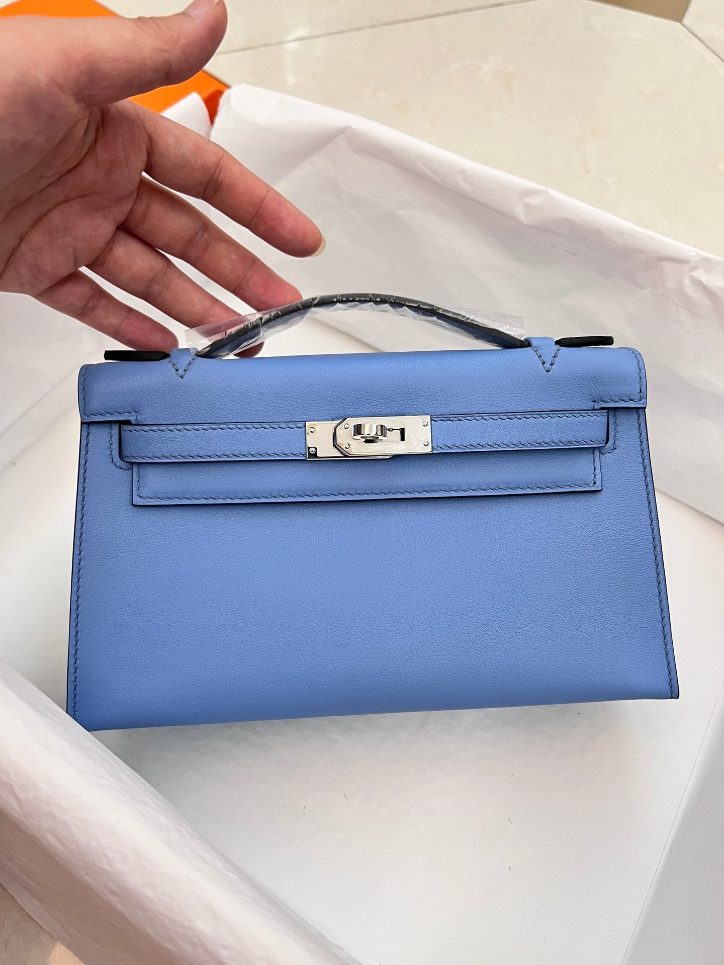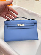 HM KELLY POCHETTE 22CM LIGHT BLUE SWIFT SILVER HARDWARE