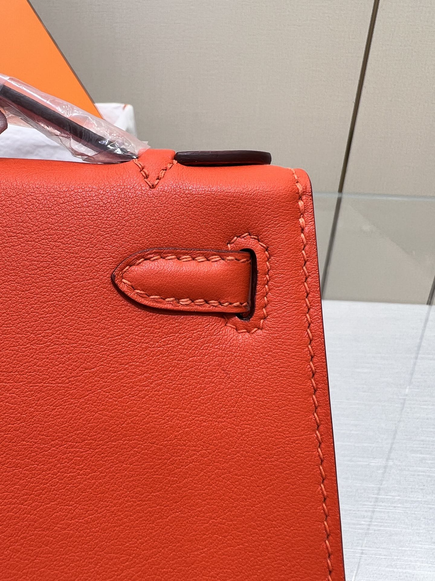 HM KELLY POCHETTE 22CM RED SWIFT SILVER HARDWARE