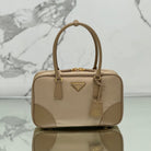 LARGE TOP HANDLE BAG 35 IN DRIED MOSS NYLON AND CALFSKIN TRIM