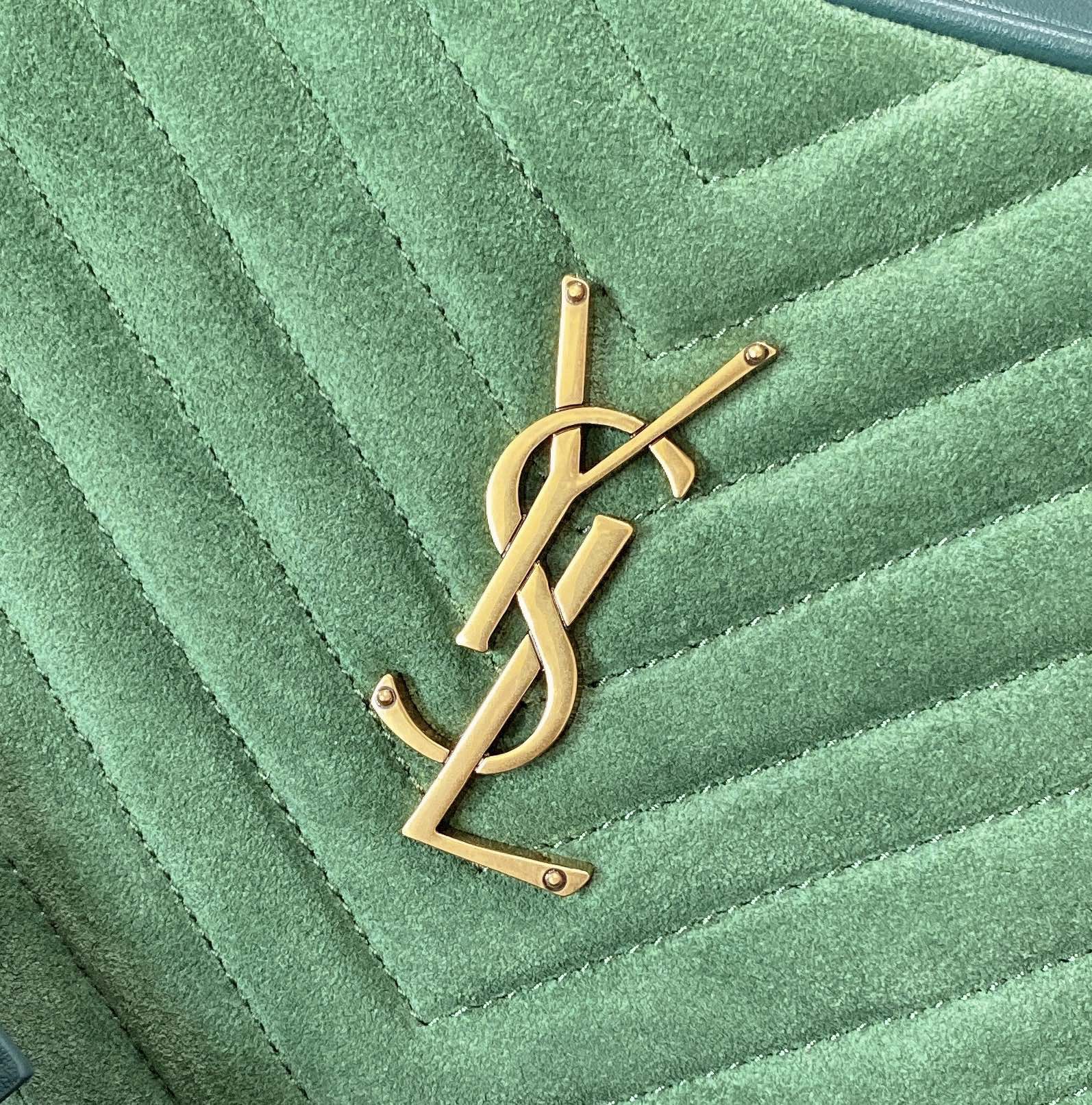LOU CAMERA BAG 23 IN GREENISH SUEDE AND CALFSKIN TRIM