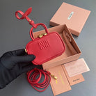 MICRO BAG KEYCHAIN 11 IN TALL POPPY RED CALFSKIN EMBOSSED LOGO