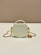 MINI ROUND BAG 8 IN WHITE GLOSSY CALFSKIN GOLD HARDWARE