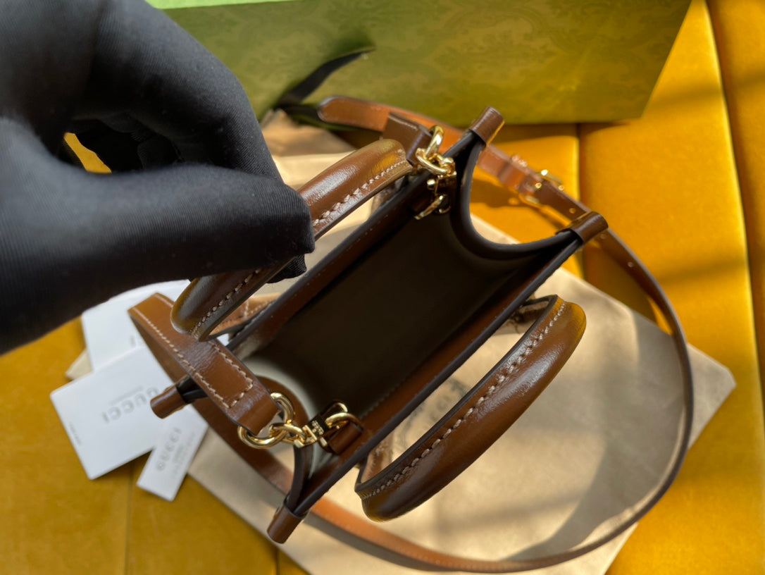 MINI TOTE 20 BAG IN BEIGE CANVAS AND BROWN CALFSKIN