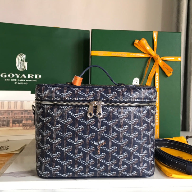 MUSE VANITY CASE 20 IN NAVY BLUE GOYARDINE CANVAS