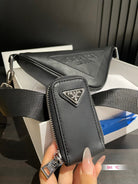 PRA TRIANGLE 26 SHOULDER BAG IN BLACK CALFSKIN