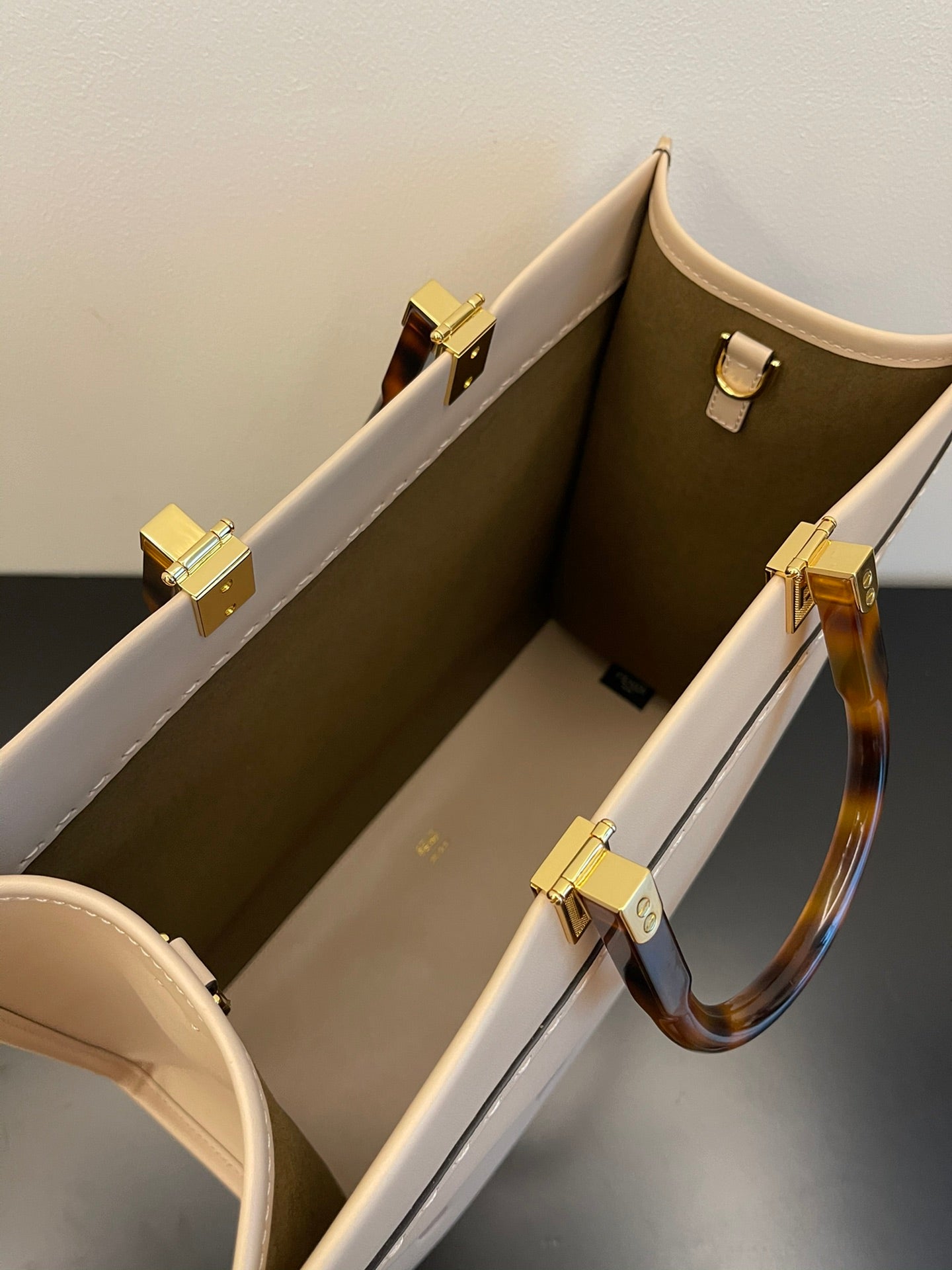 SHINE LARGE 35 TOTE IN BEIGE CREAM CALFSKIN