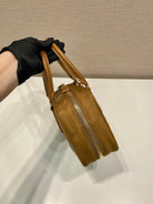 SMALL TOP HANDLE BAG 25 IN GOLDEN BROWN NYLON AND CALFSKIN TRIM