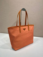 TOTE BAG 33 IN ORANGE MIX WHITE TRIANGLE PATTERN EMBROIDERED FABRIC