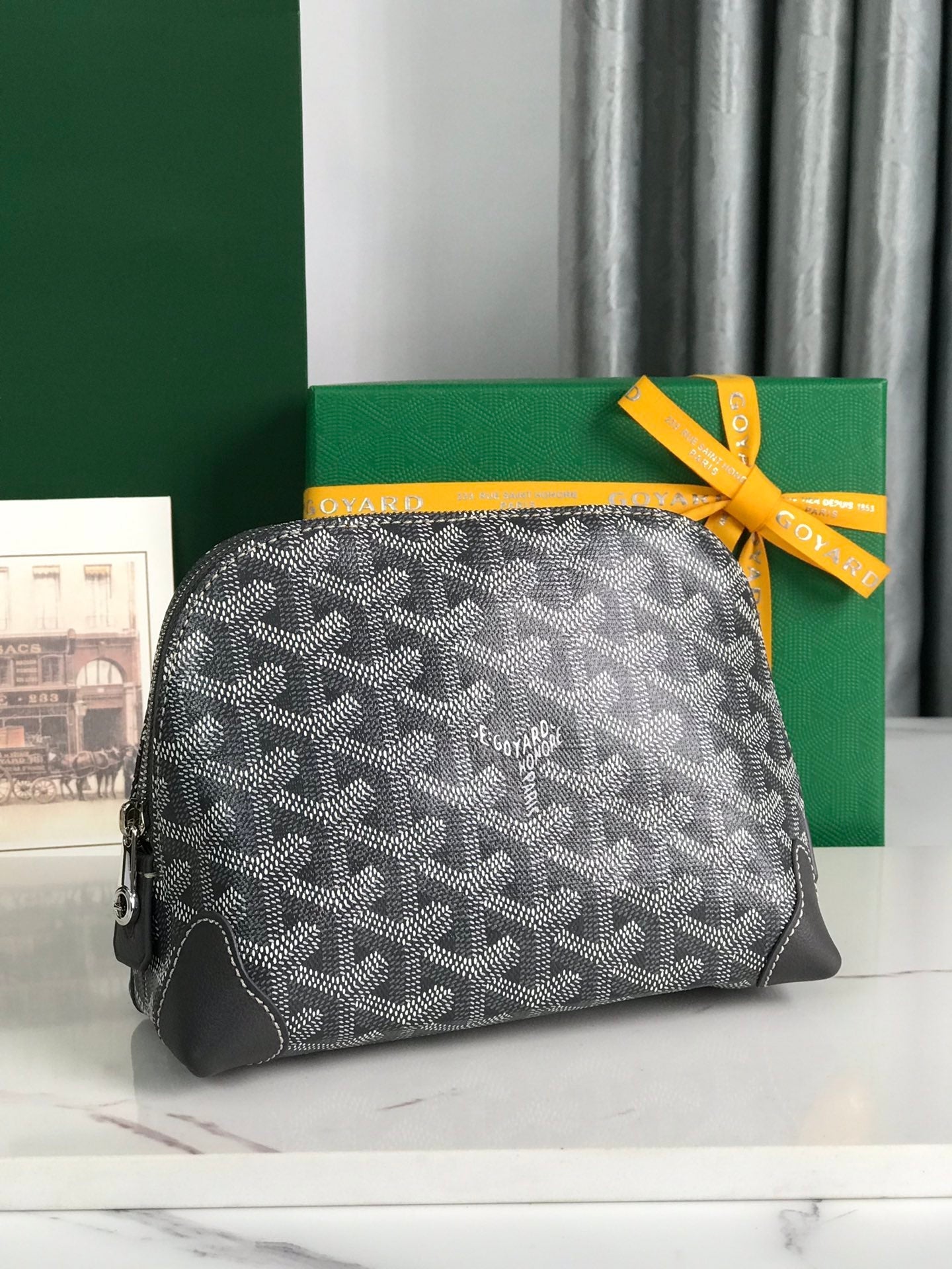 VENDÔME COSMETIC POUCH 17 IN GREY BLACK GOYARDINE CANVAS AND CALFSKIN TRIM