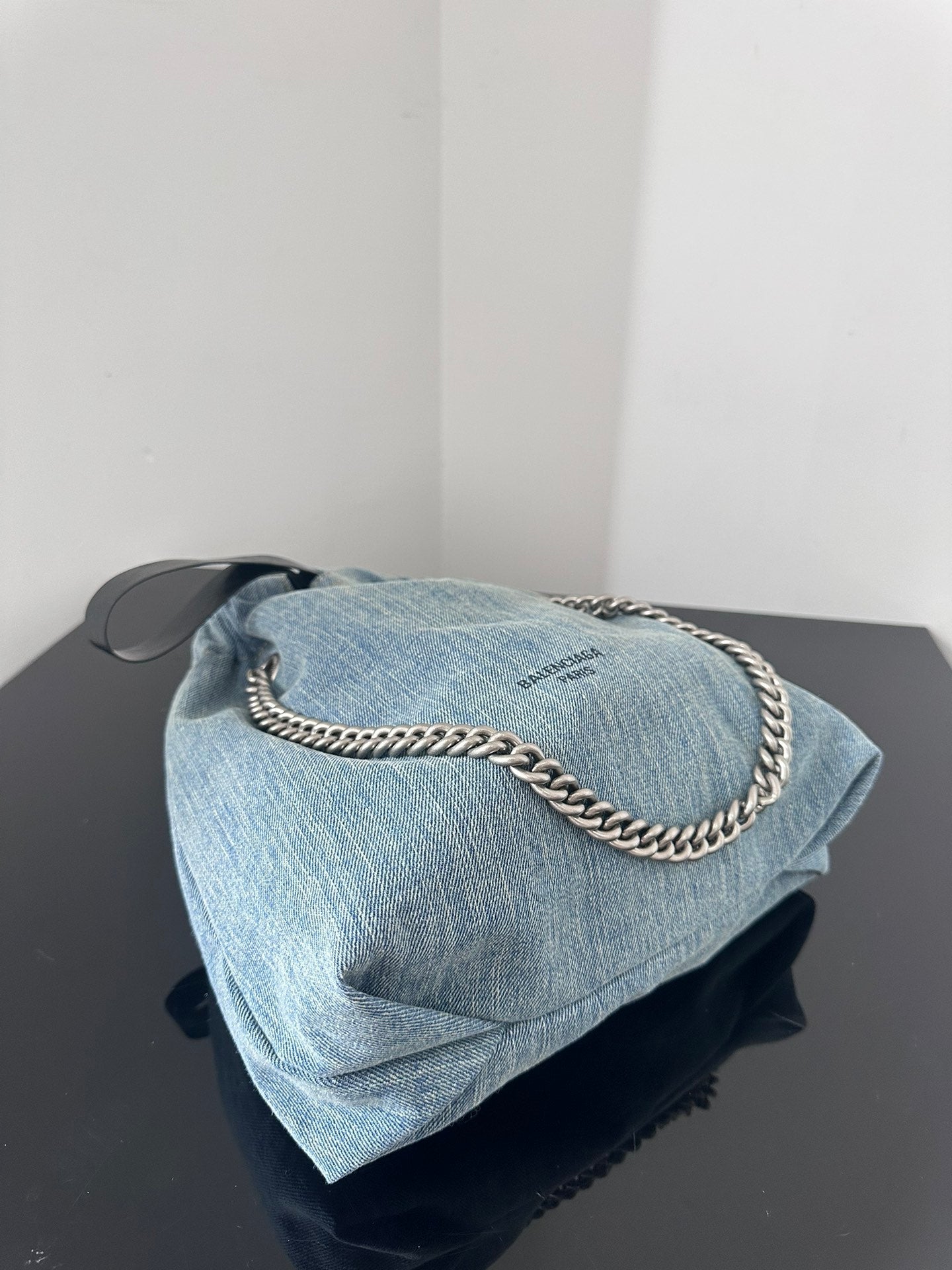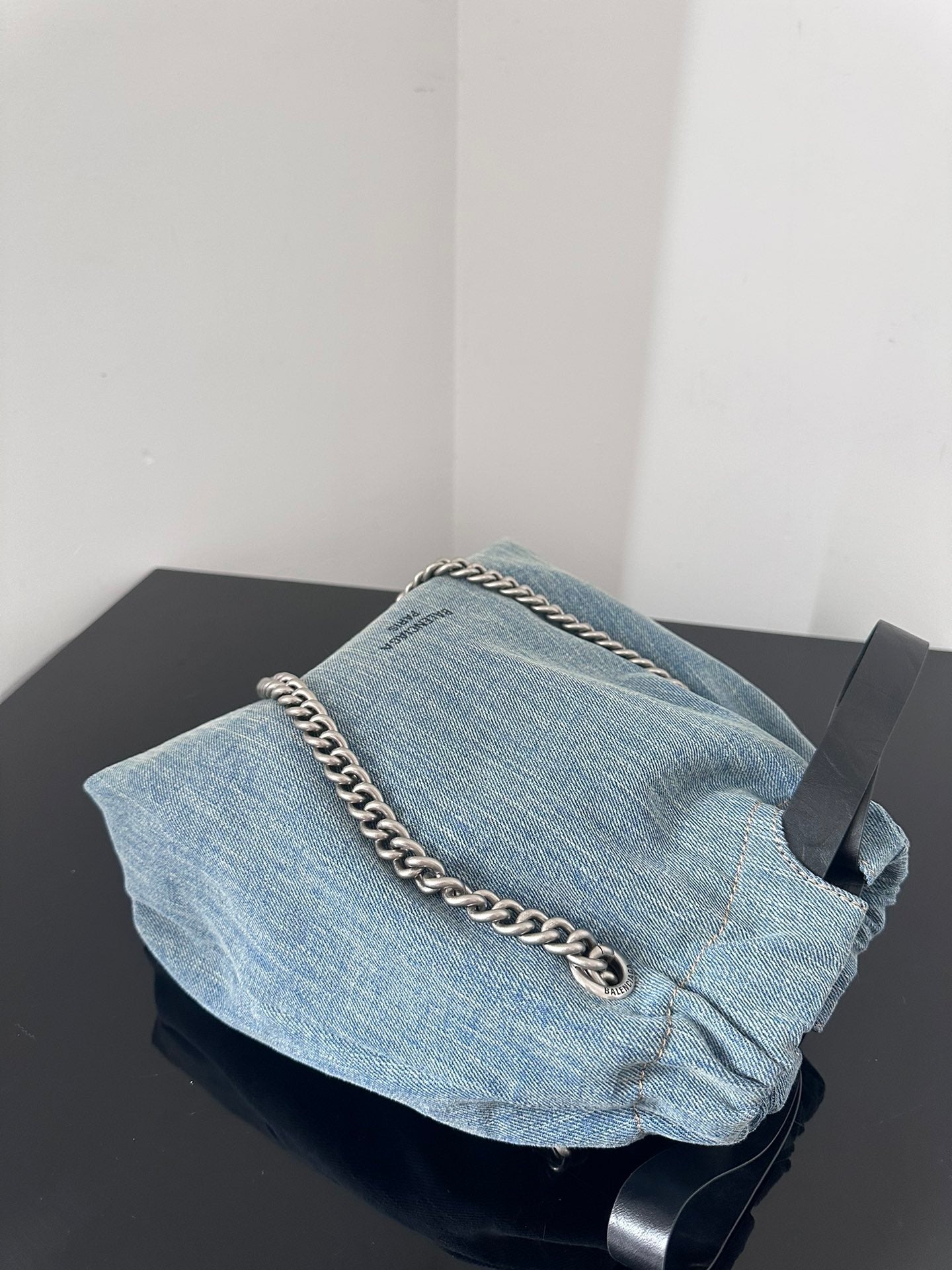 CRUSH SMALL TOTE BAG 26 IN BLUE WASHED DENIM SILVER HARDWARE
