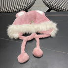 • Women's Hat with plush material and pom-pom design, featuring cute bunny ears, ideal for winter.