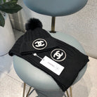 SET BEANIE HAT AND SCARF IN BLACK WOOL 424024