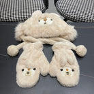 • Three-Piece Set for women, featuring a cute bear-shaped plush hood, scarf, and gloves, ideal for autumn and winter.