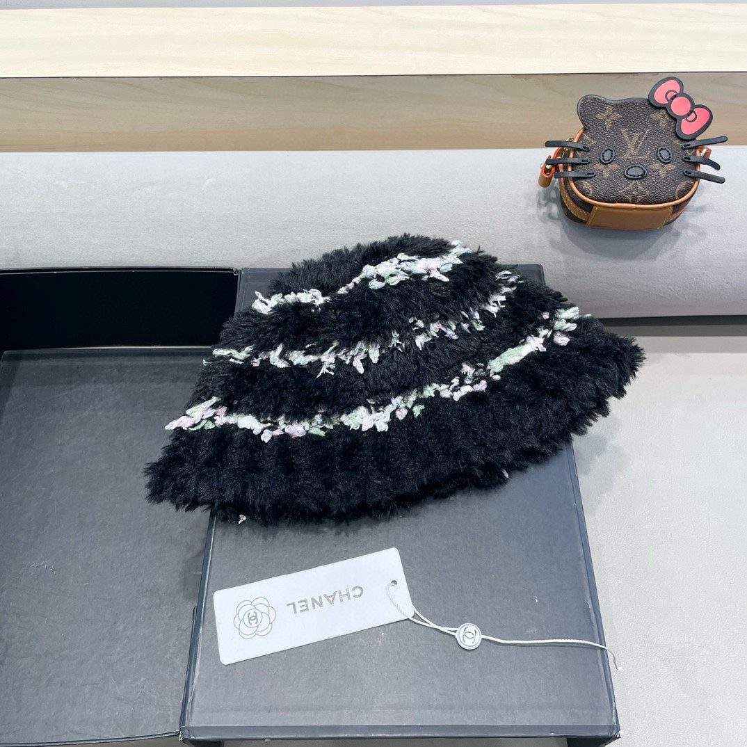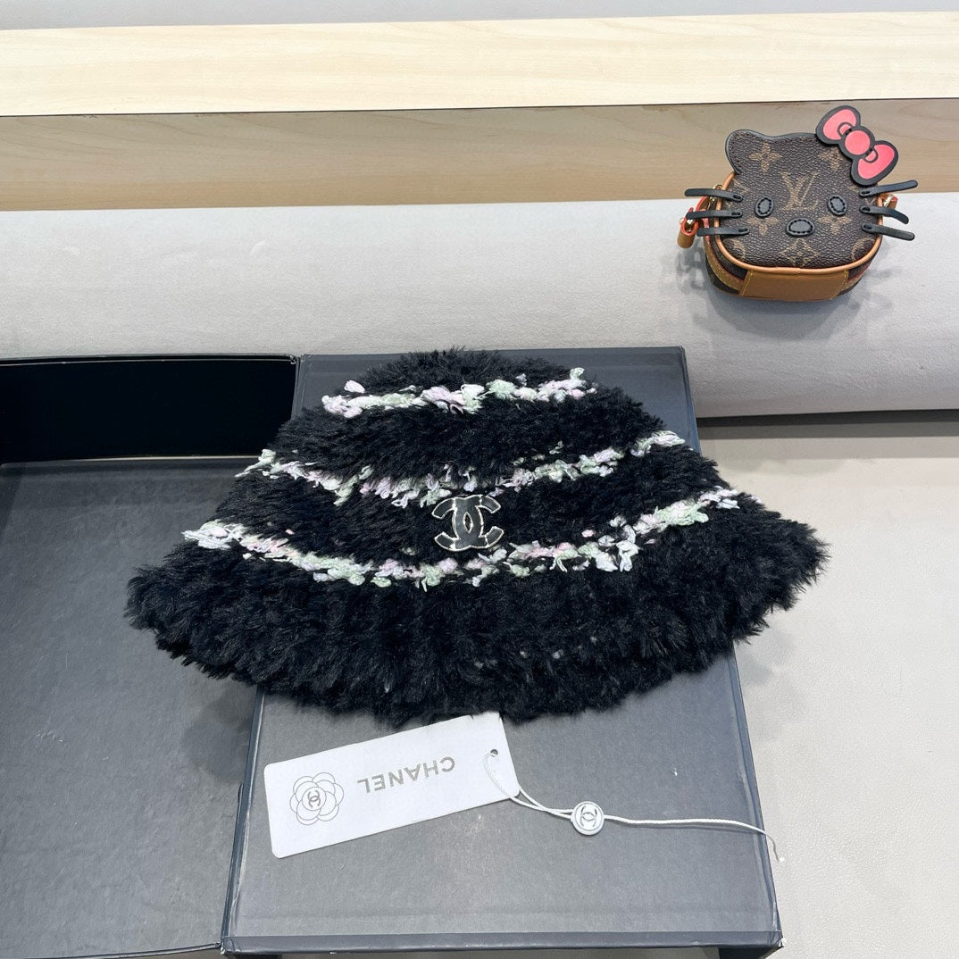 BUCKET HAT IN BLACK MIX WHITE LAMB FUR 420892