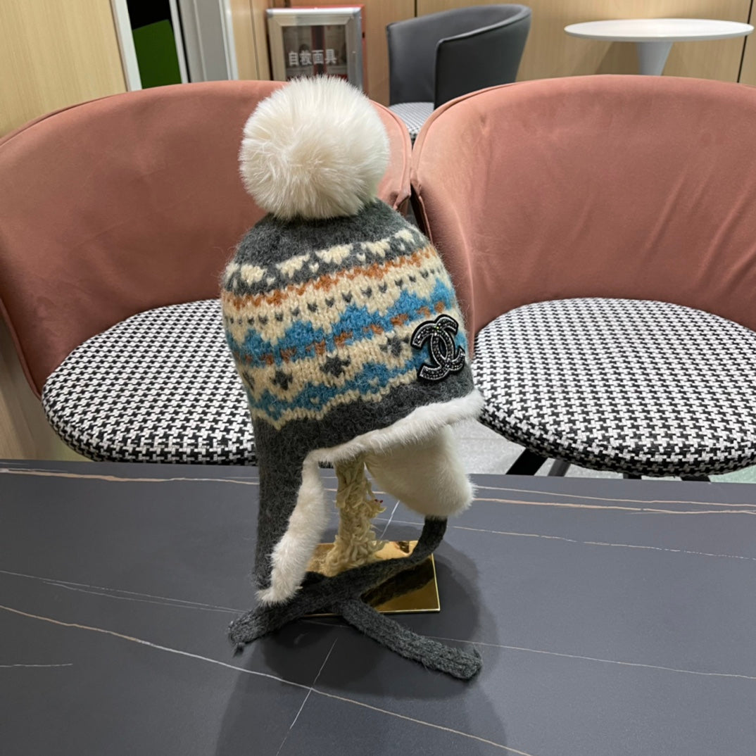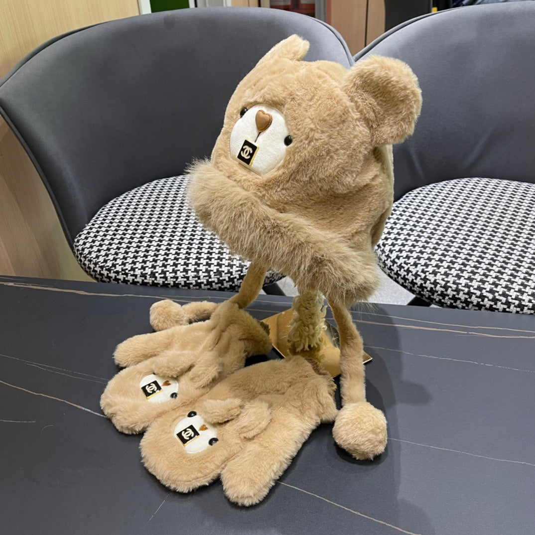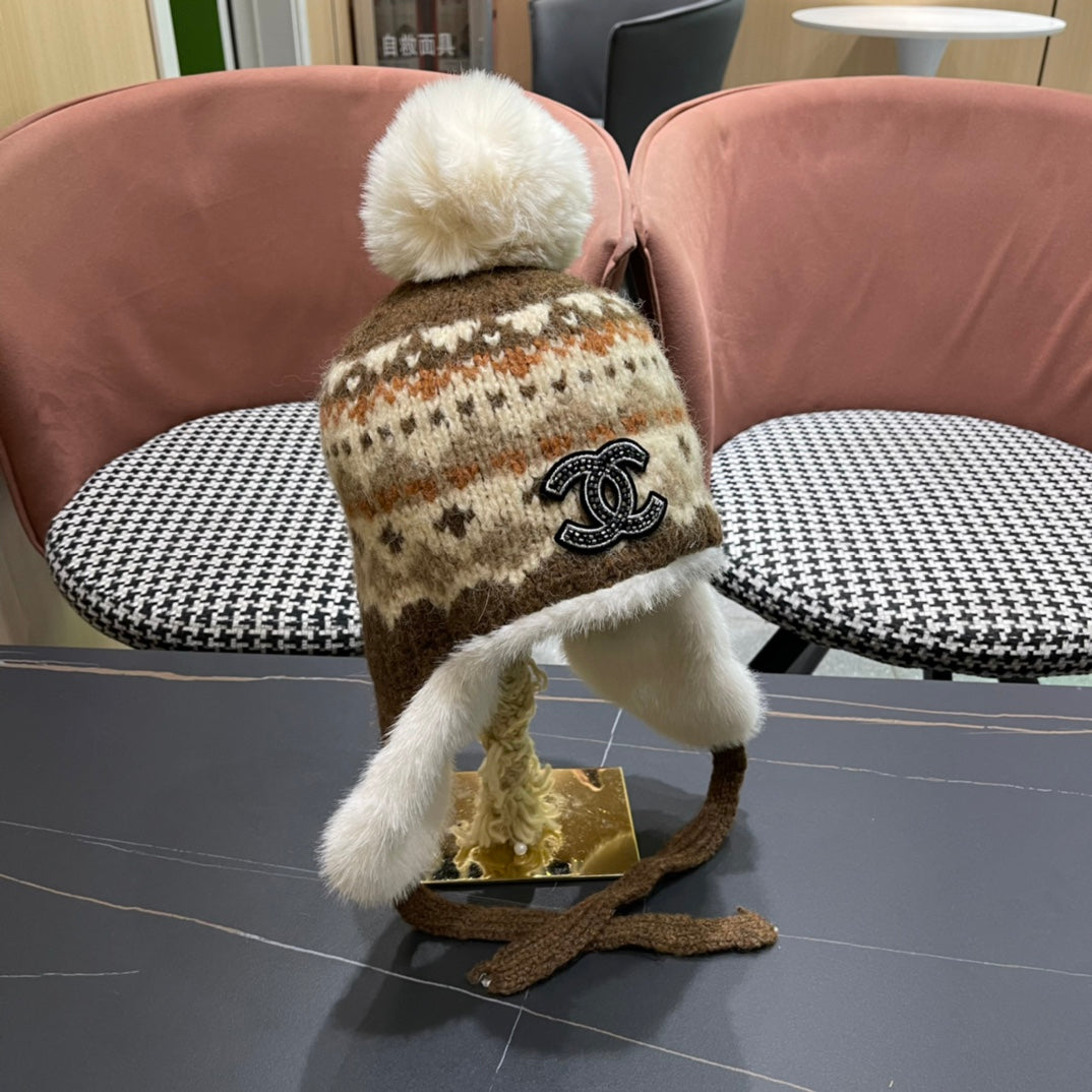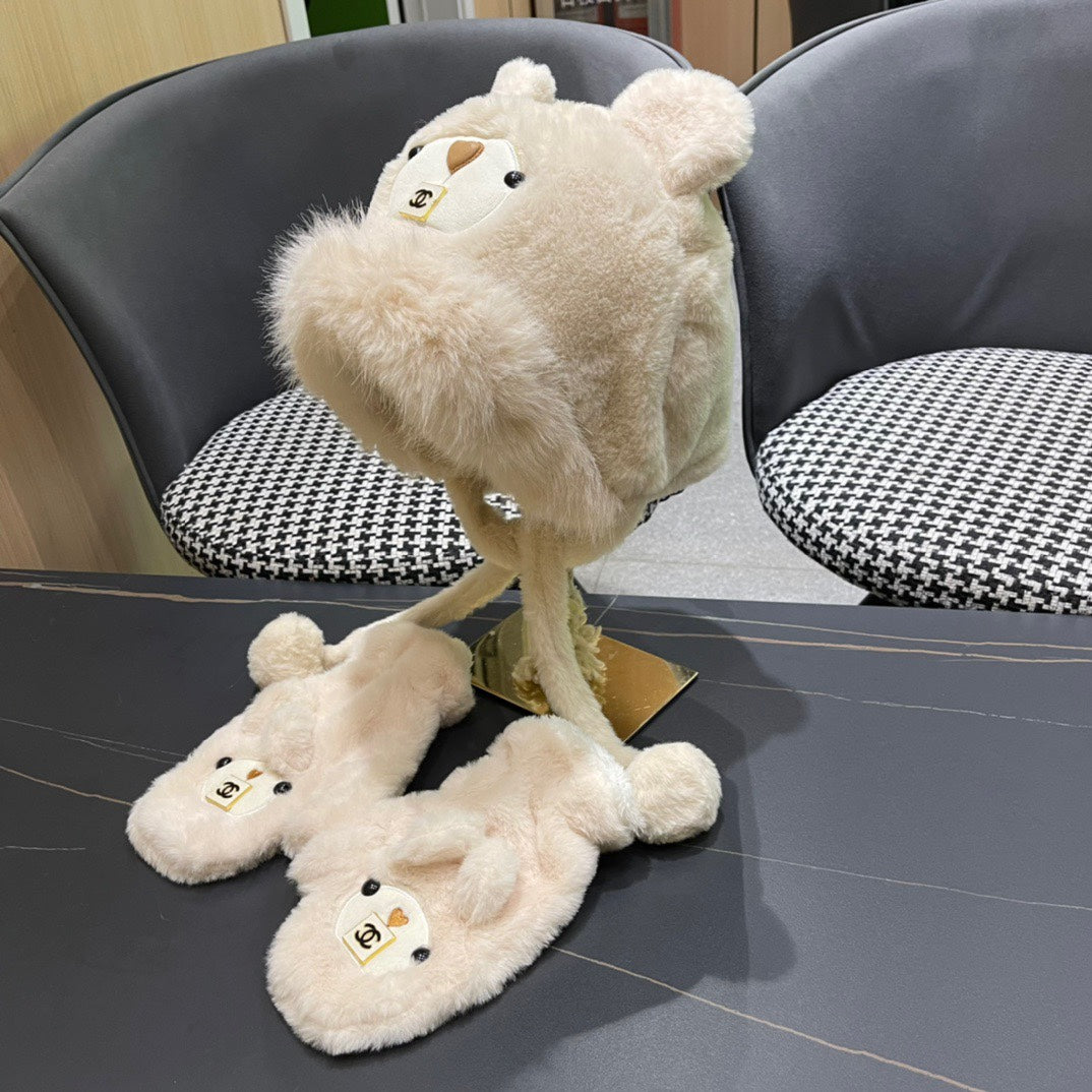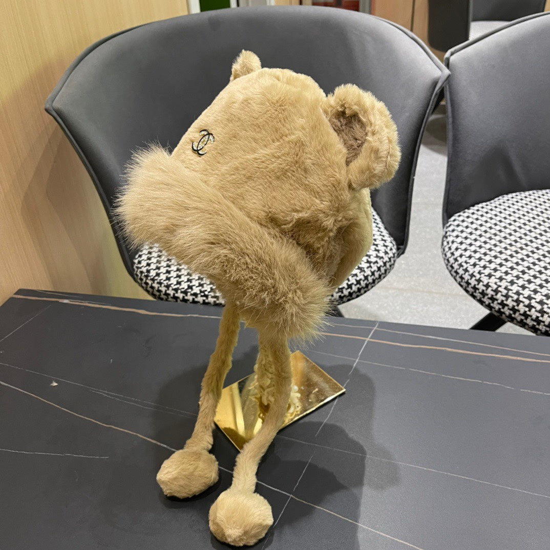 BALACLAVA HAT IN CAMEL BEIGE MIX WHITE FLEECE 422215