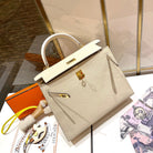 HM KELLY 25CM WHITE EPSOM LEATHER GOLD HARDWARE