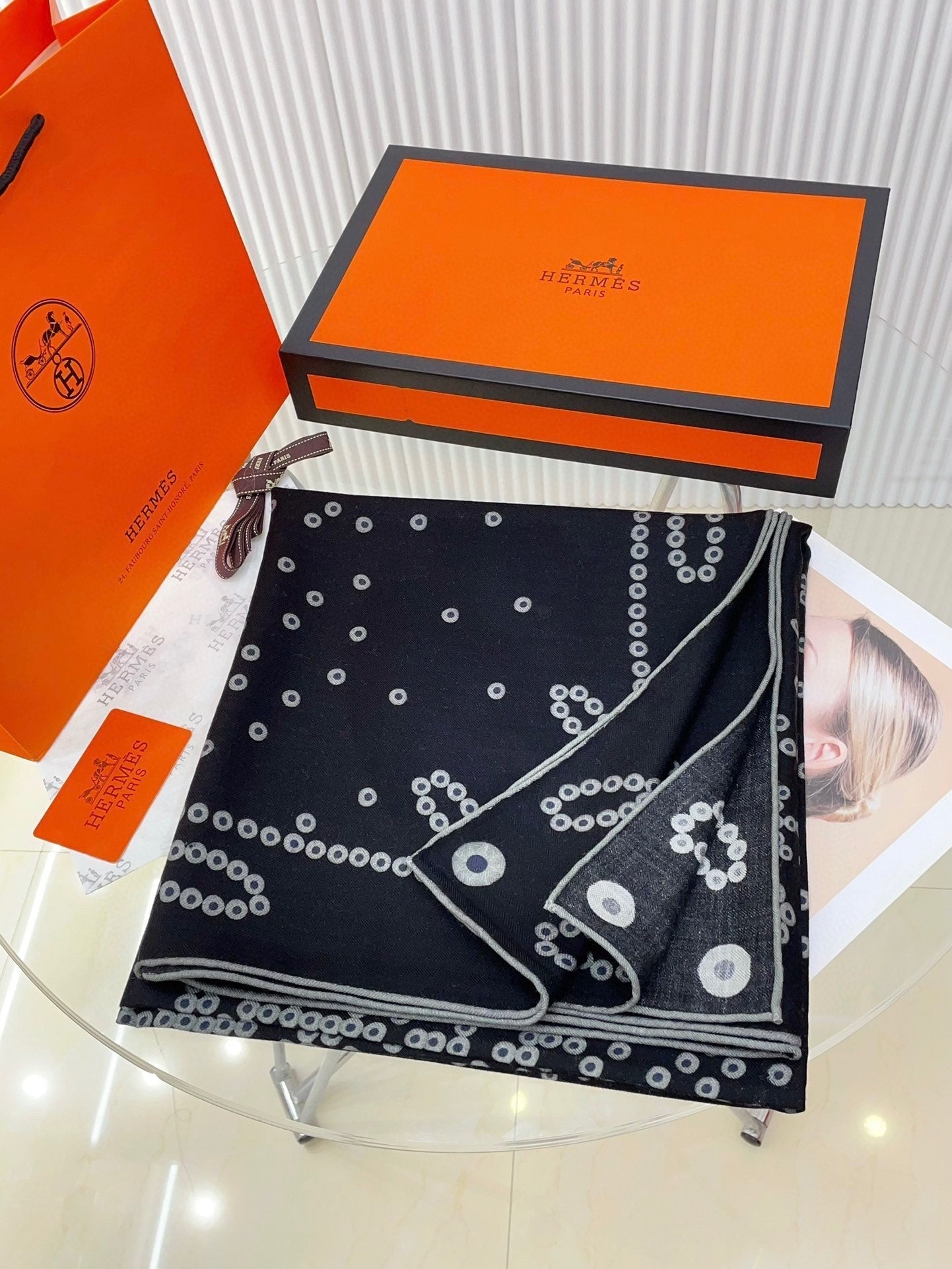 Cheval De Legende Scarf 140 CM Charcoal Blue Pattern Cashmere And Silk