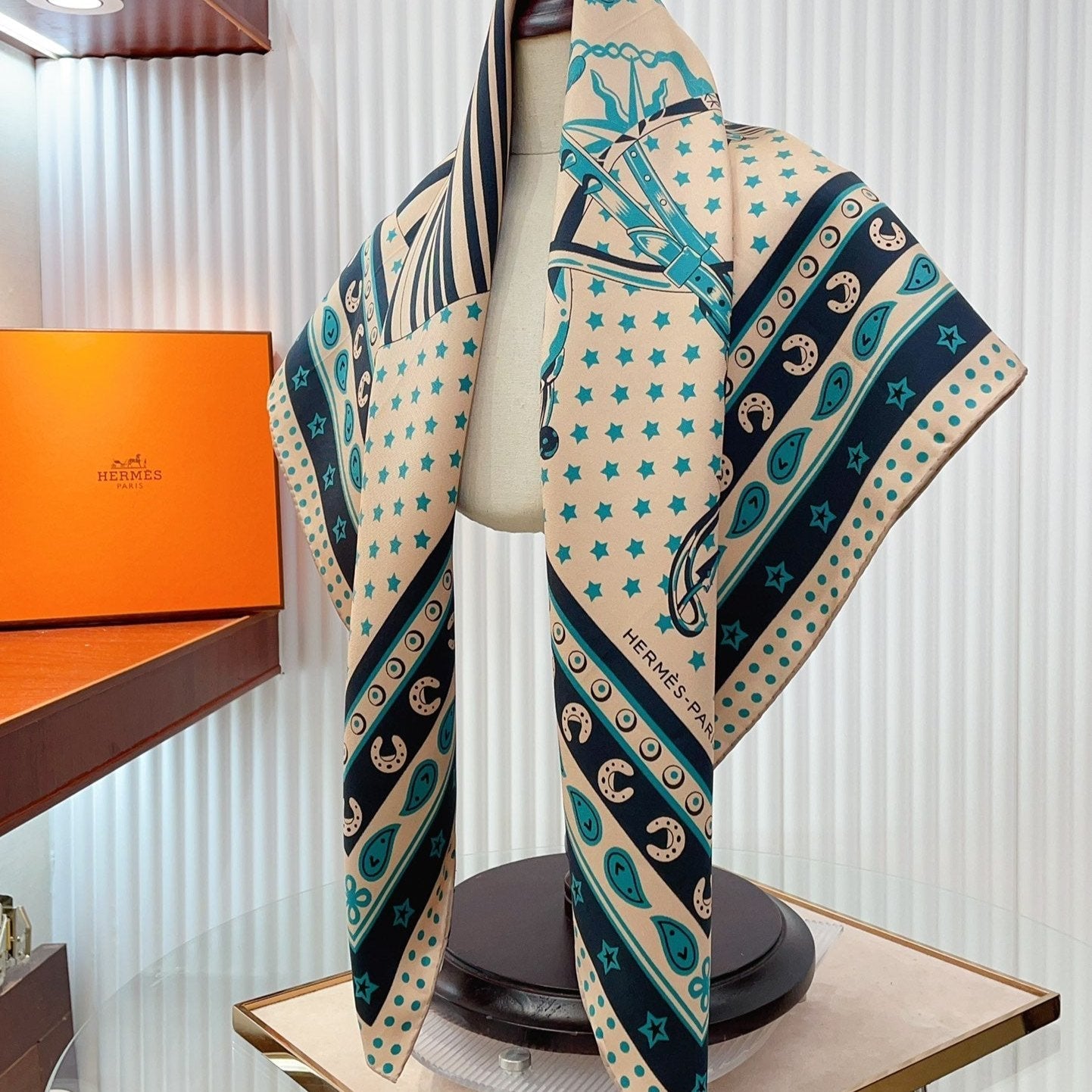 Cheval Punk Bandana Scarf 90 CM In Beige Mix Black Deep Green Silk Twill 309211