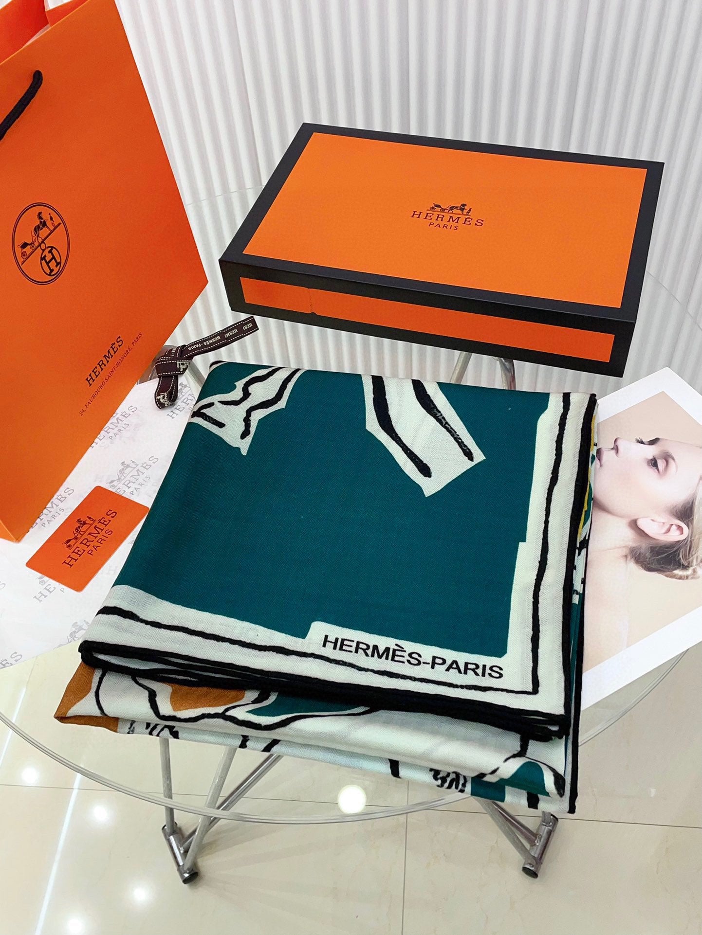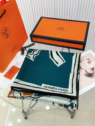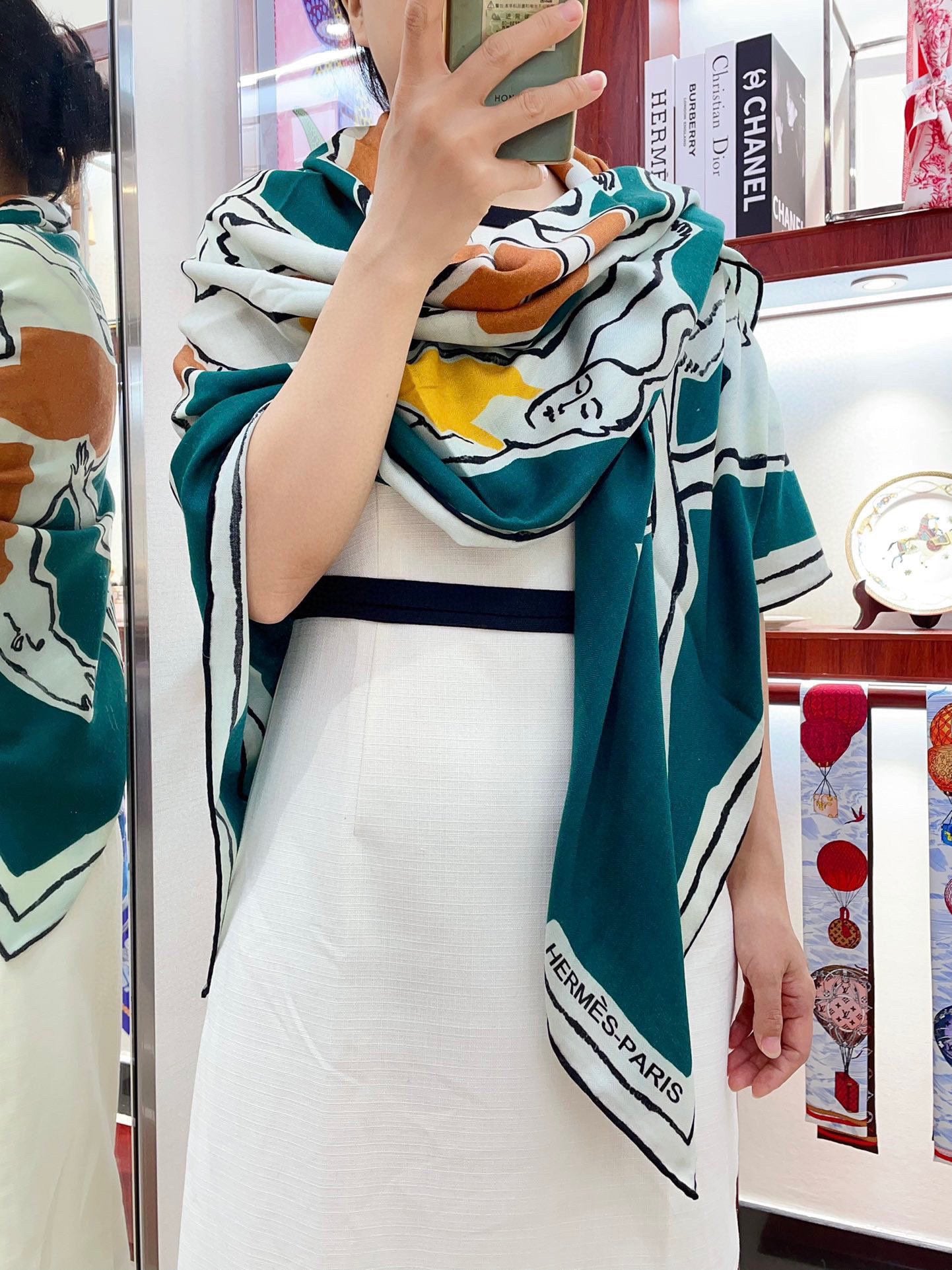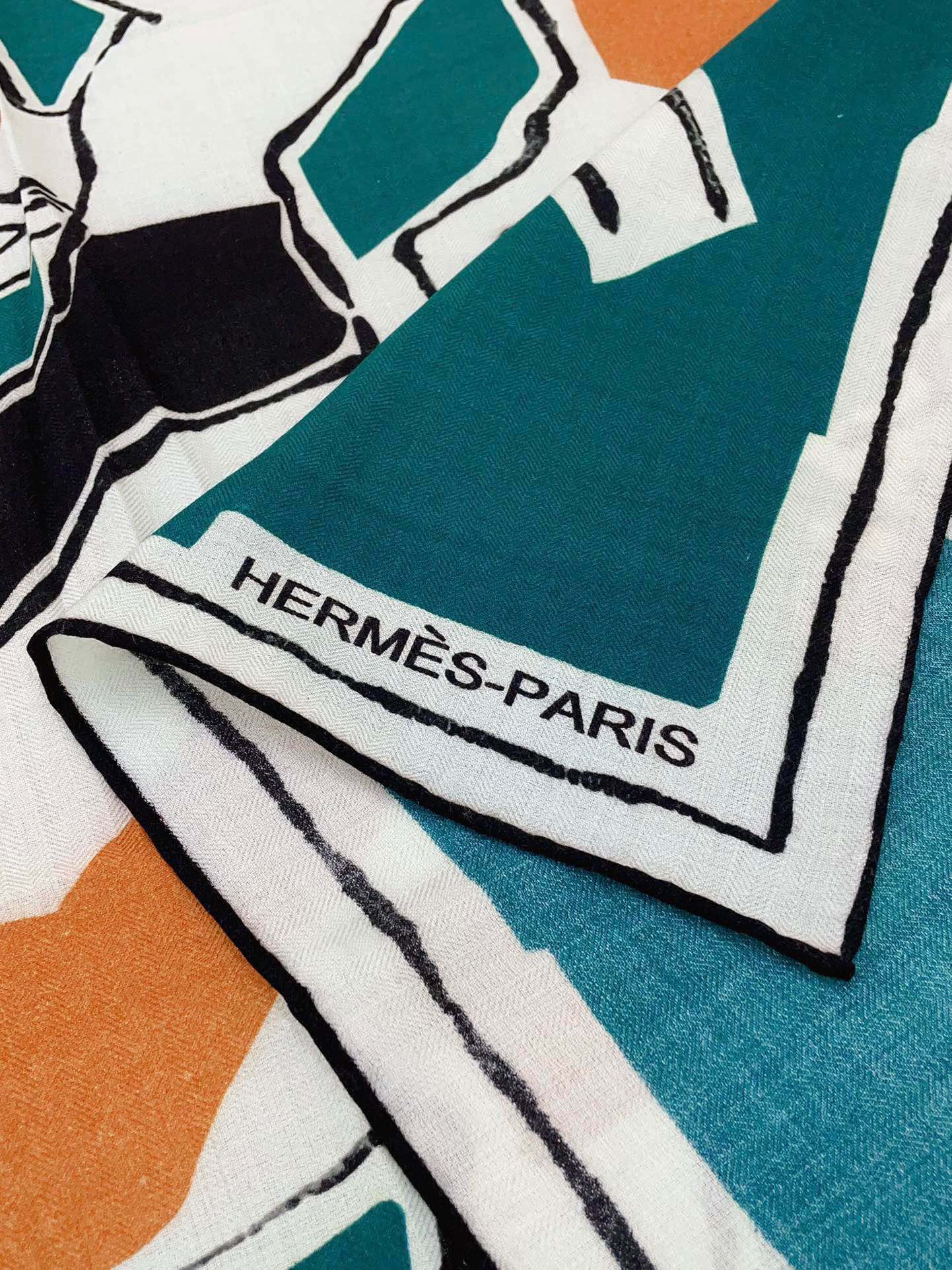 Choregraphie Equestre Scarf 140 CM Teal Blue Colorful Cashmere And Silk 393171