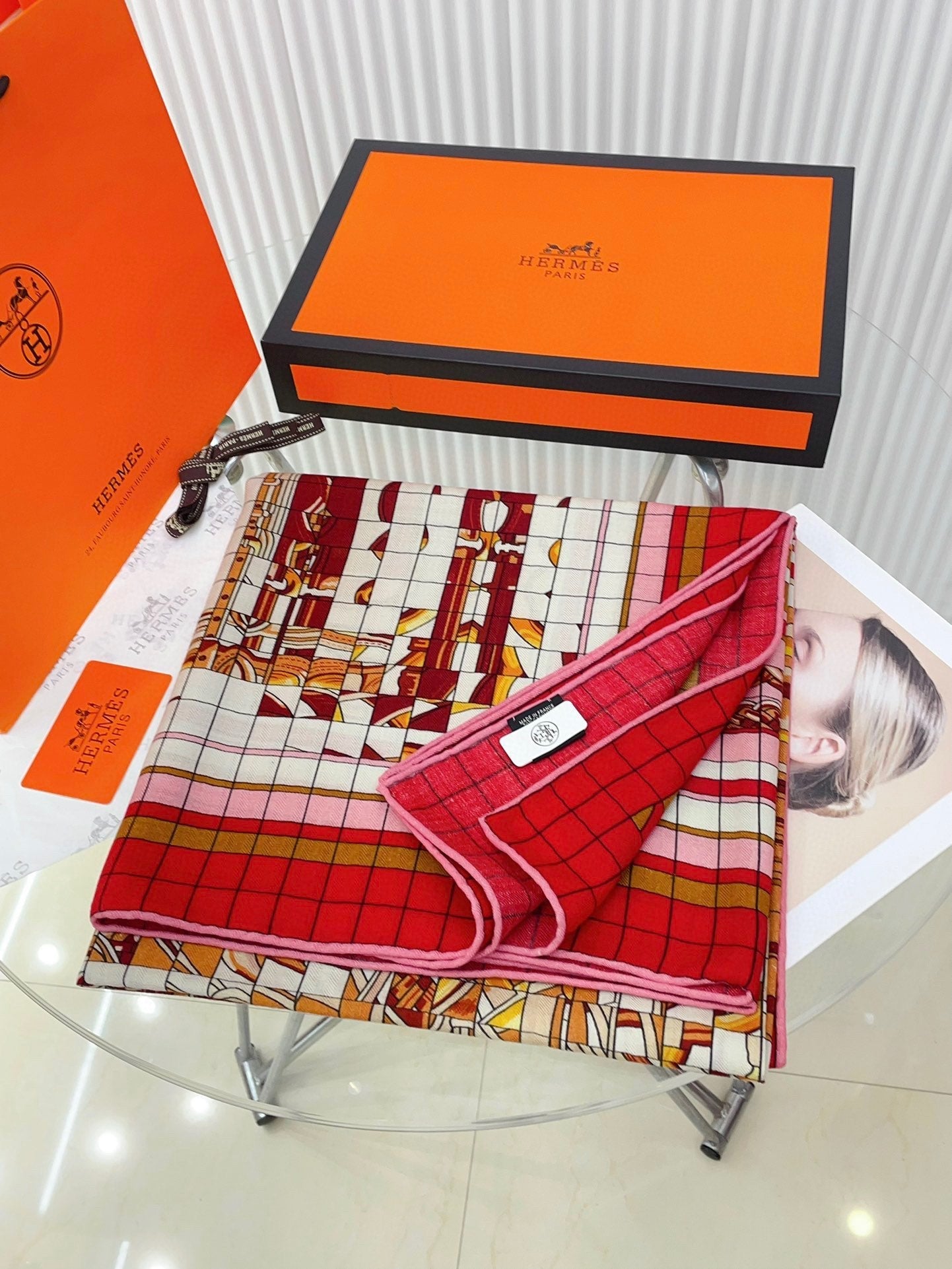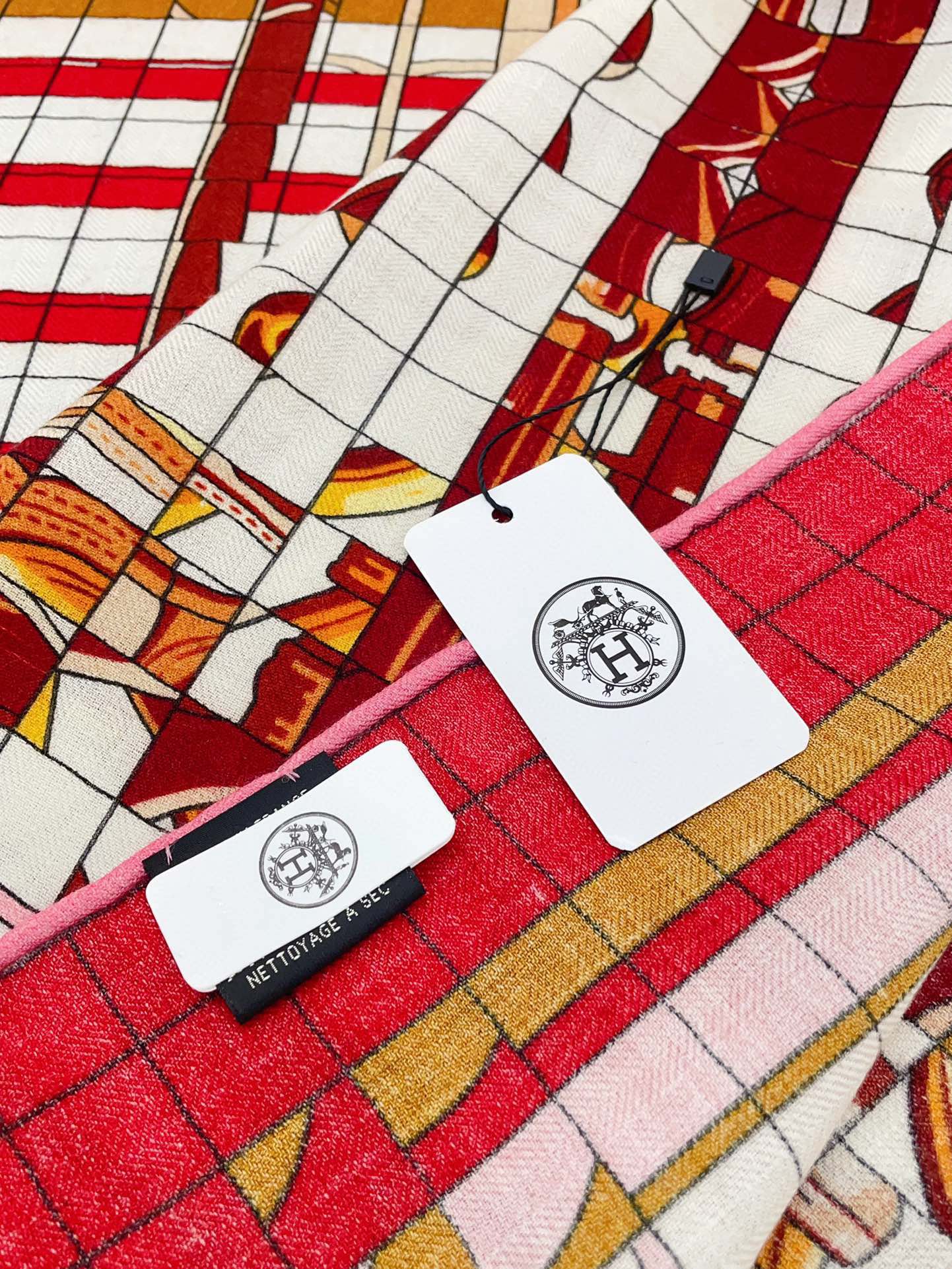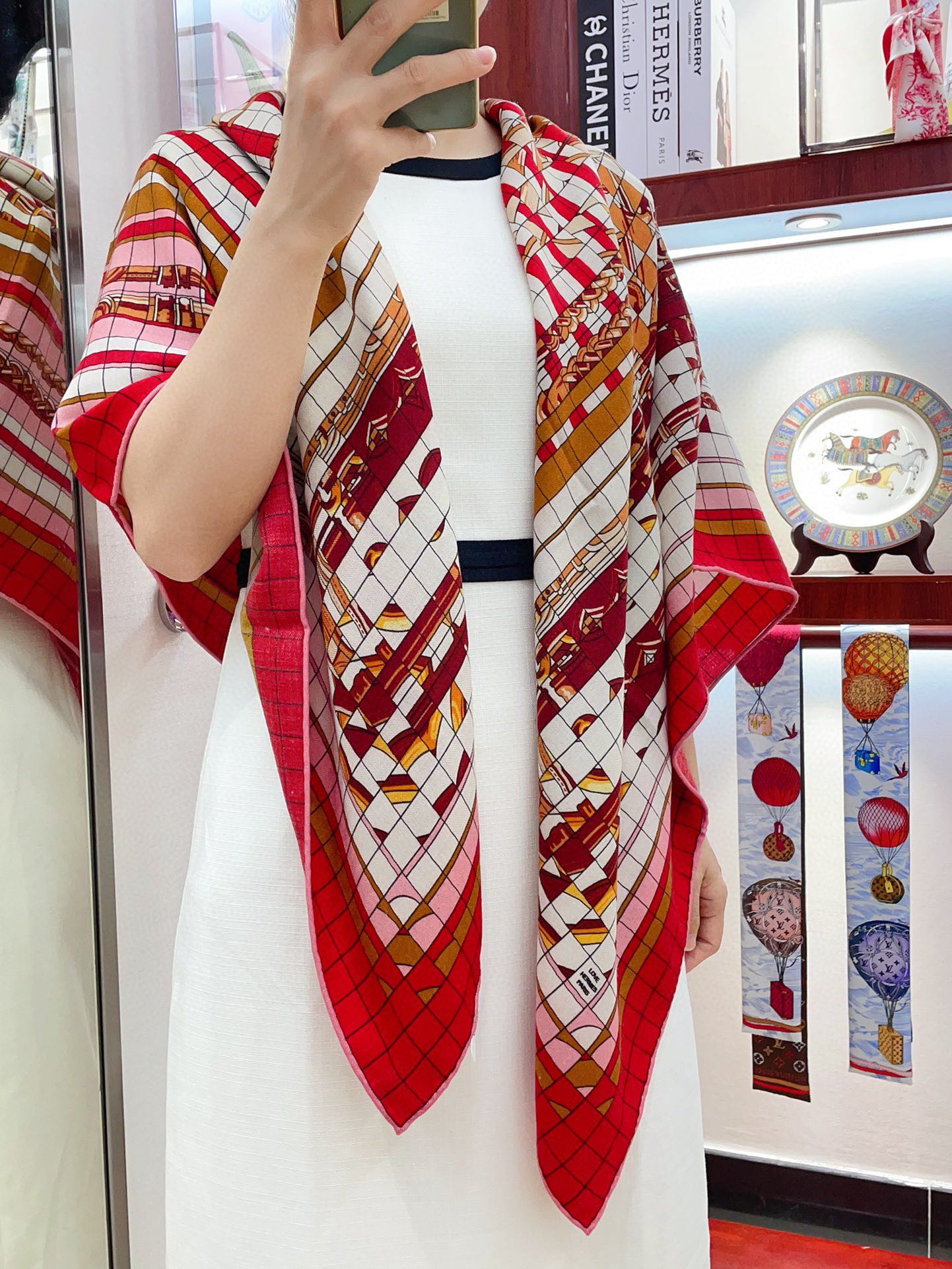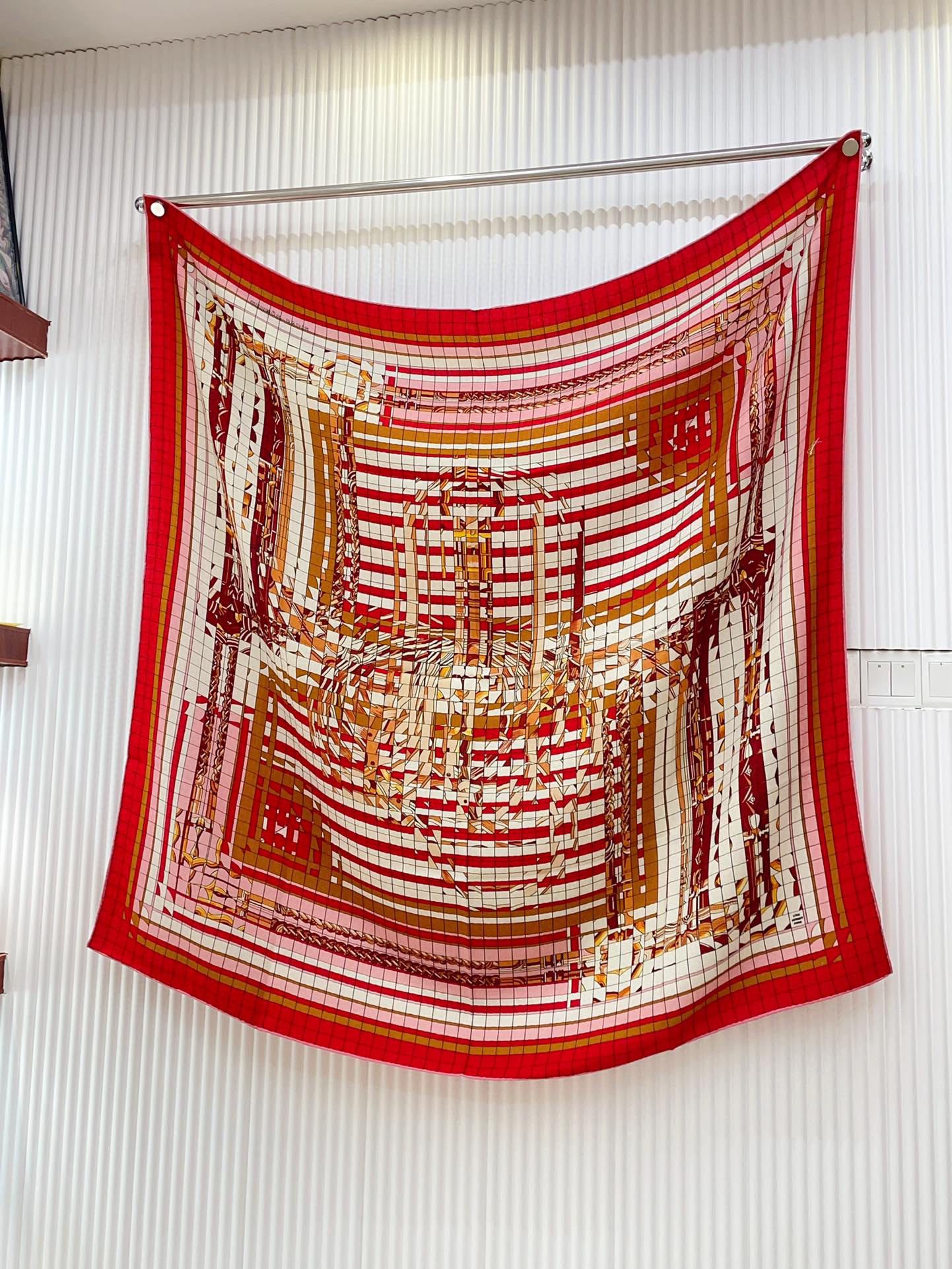 Coaching Deja-Vu Shawl 140 CM Red Colorful Cashmere And Silk 398261