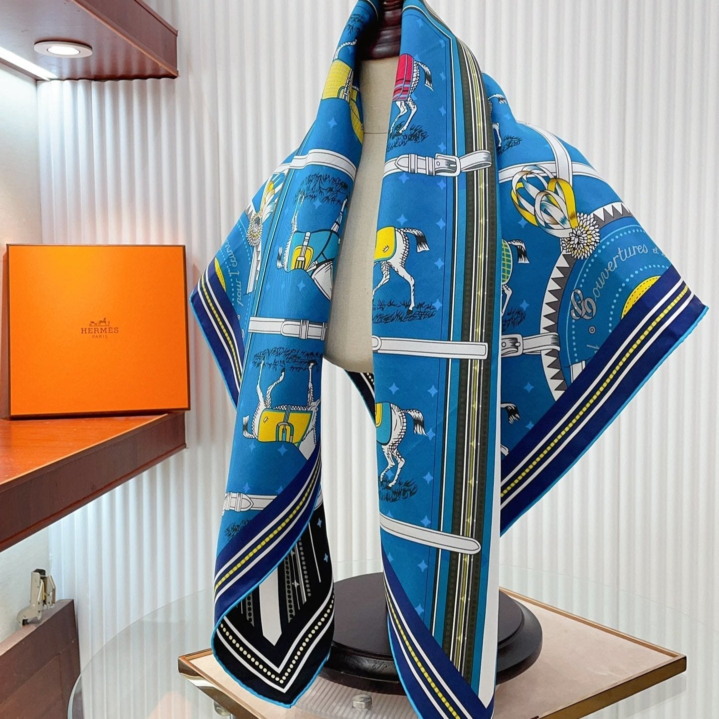 Couvertures Et Tenues De Jour Double Face Scarf 90 CM In Blue Mix Black Colorful Silk 190031