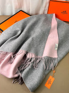 DOUBLE-FACE SCARF 200 CM IN LIGHT PINK AND GREY CASHMERE