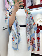 En Attendant Ulysse Shawl 140 CM In Light Blue Colorful Cashmere And Silk 294497