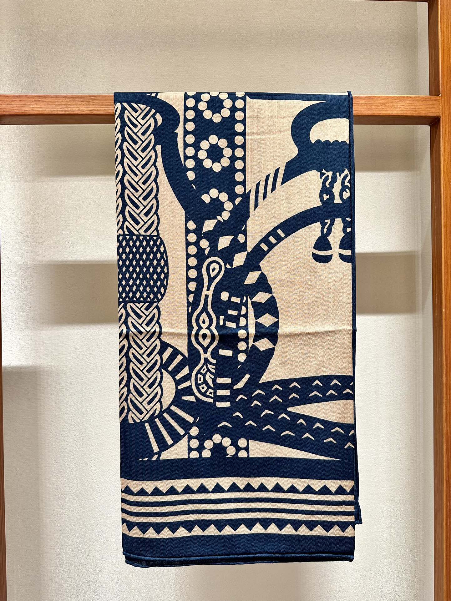 Fantaisie d'Etriers Scarf 140 CM Navy Blue Silk