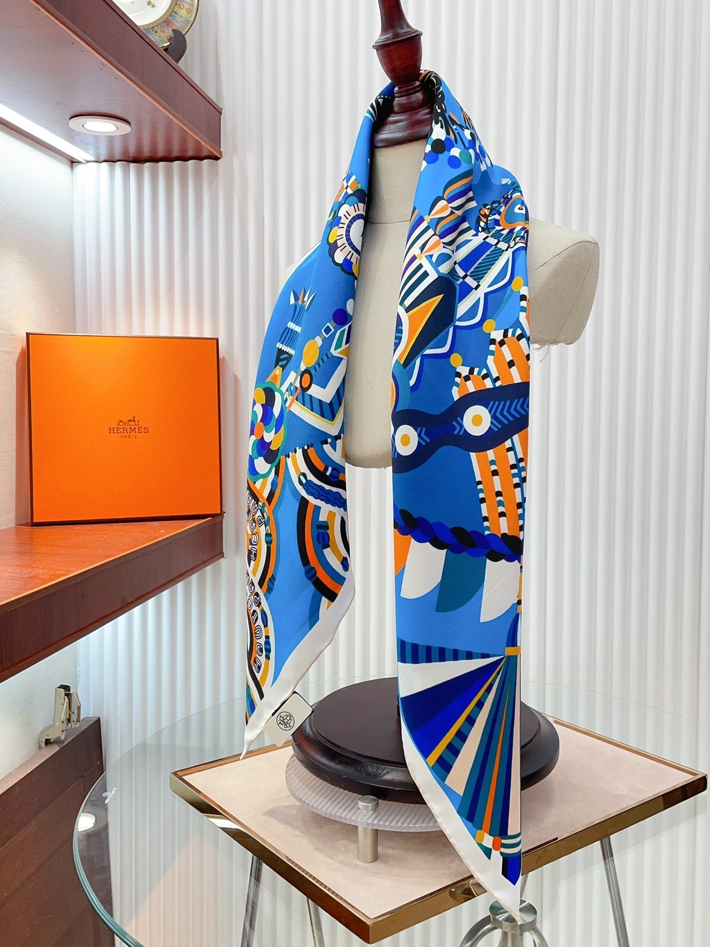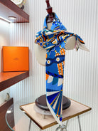 Haute Parure Scarf 90 CM In Blue Colorful Silk Twill 239535