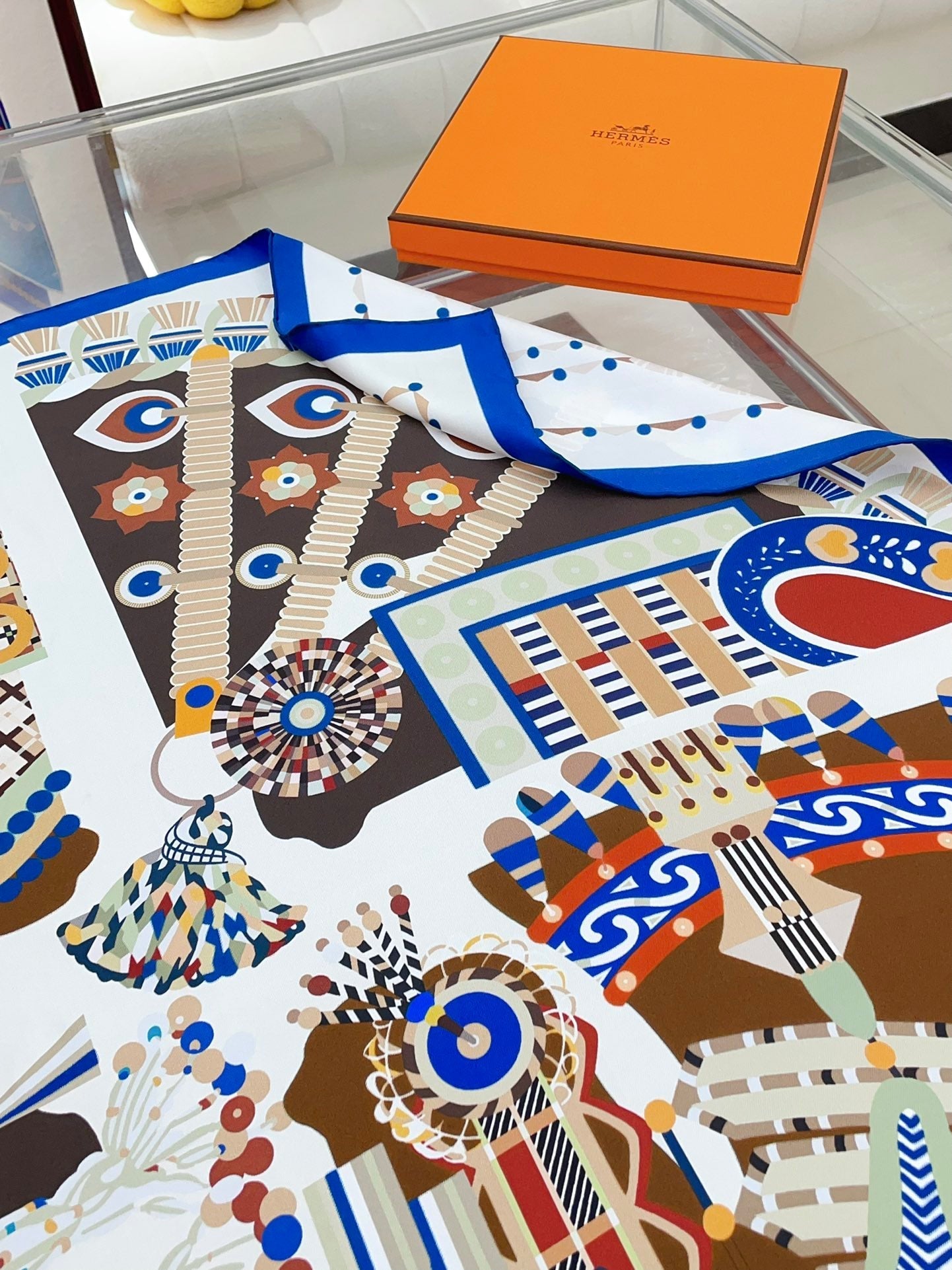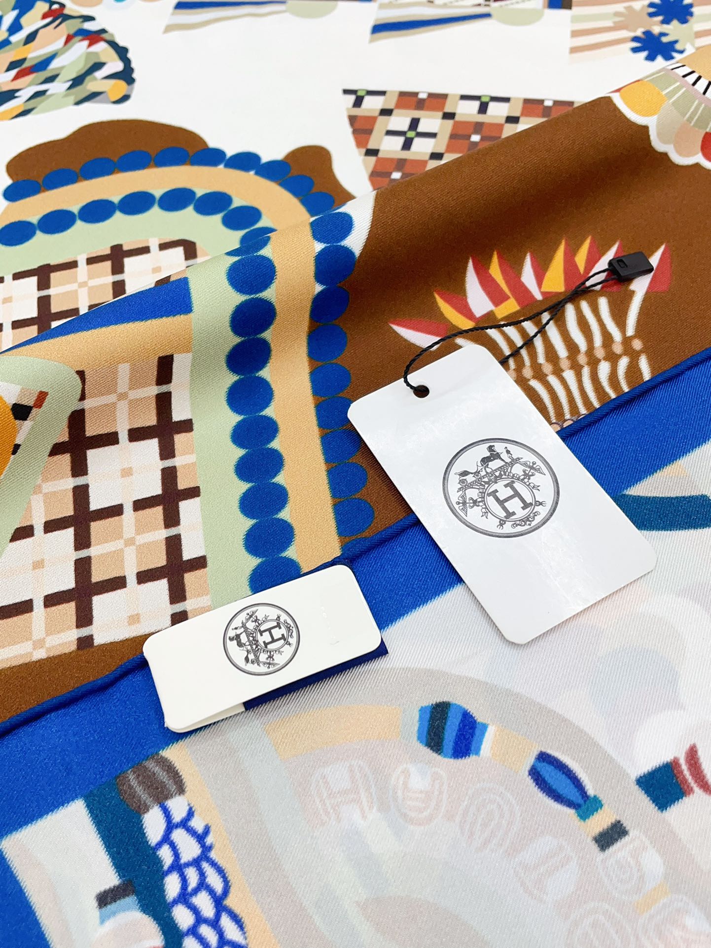 Haute Parure Scarf 90 CM In White Colorful Silk Twill 239533