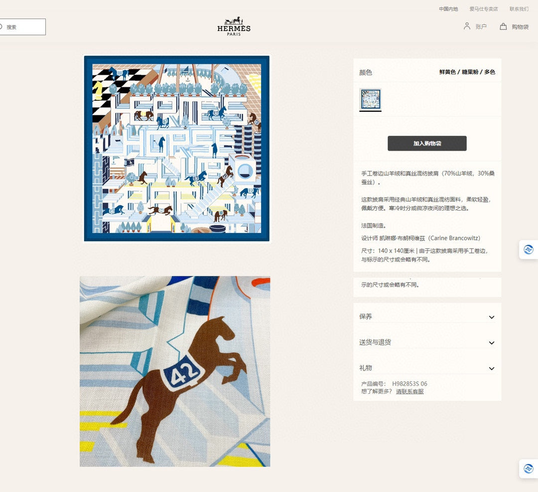 Horse Club Detail Scarf 140 CM In Colorful Cashmere And Silk 217219