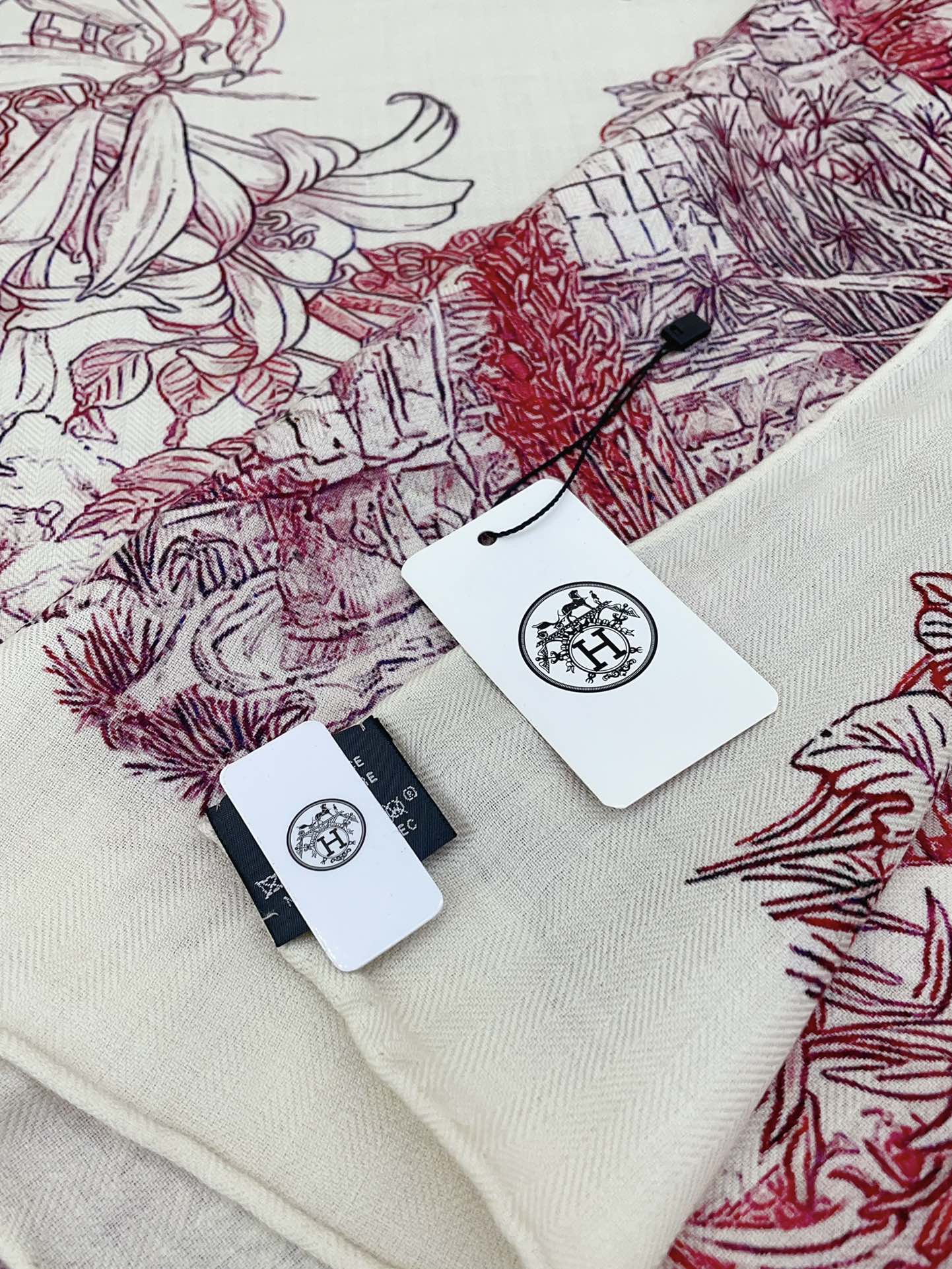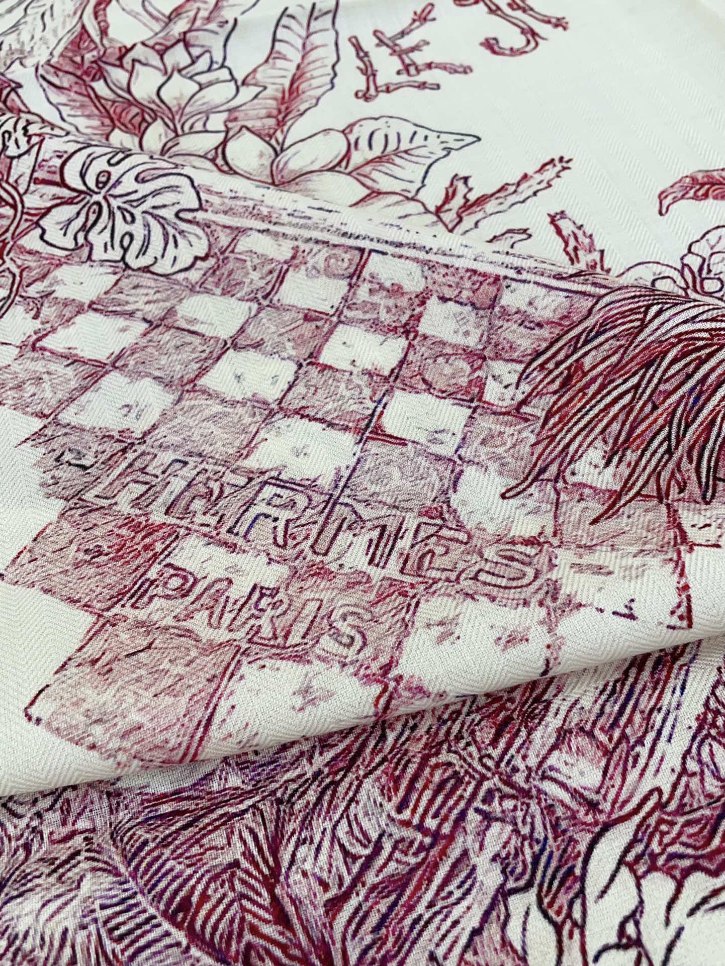 Le Jardin De Leila Au Bloc Shawl 135 CM In Pink Red Cashmere And Silk 316264