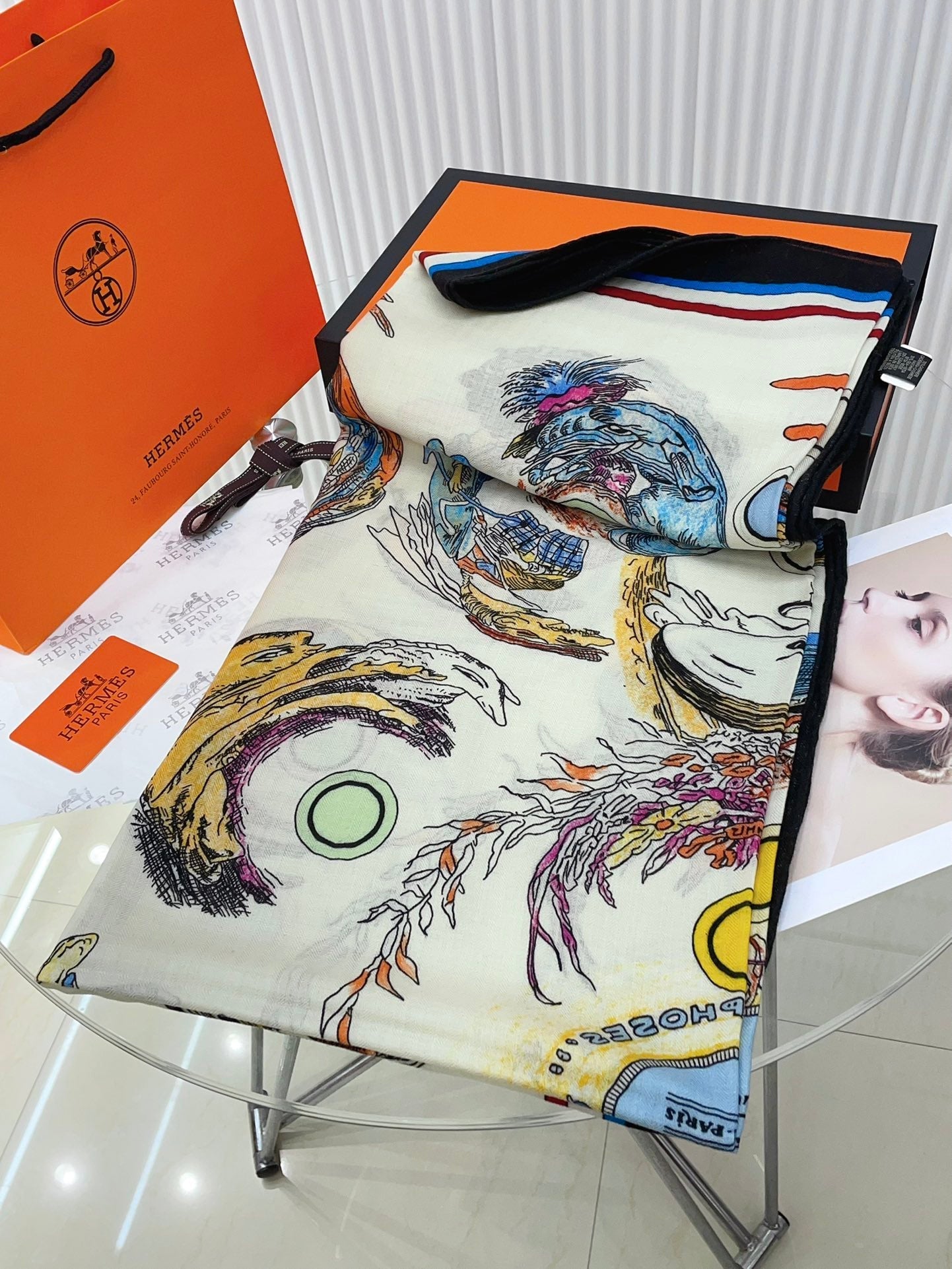 Les Anamorphoses Scarf 140 CM In White Cashmere And Silk 269265