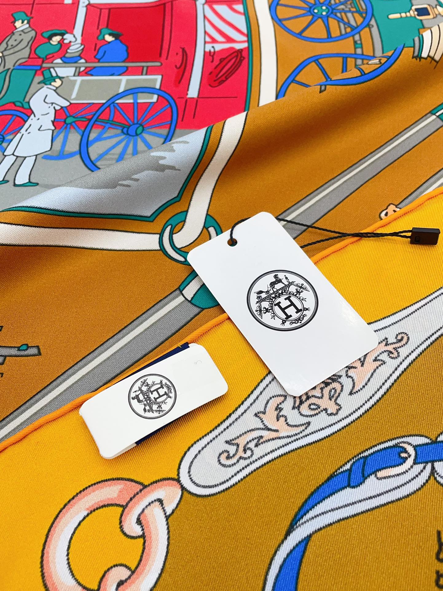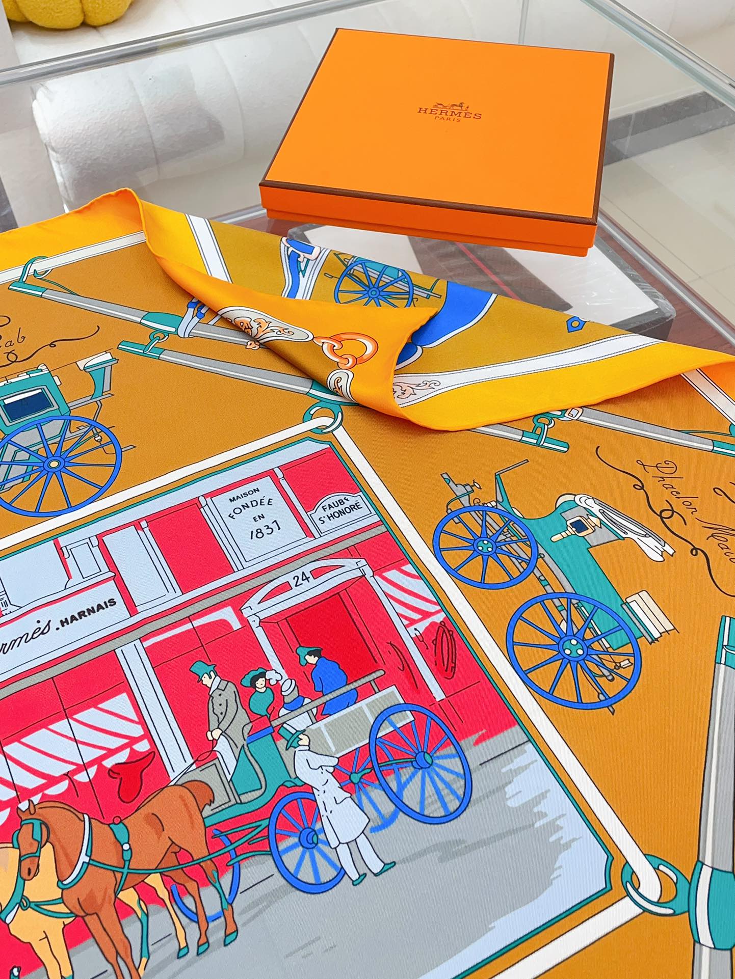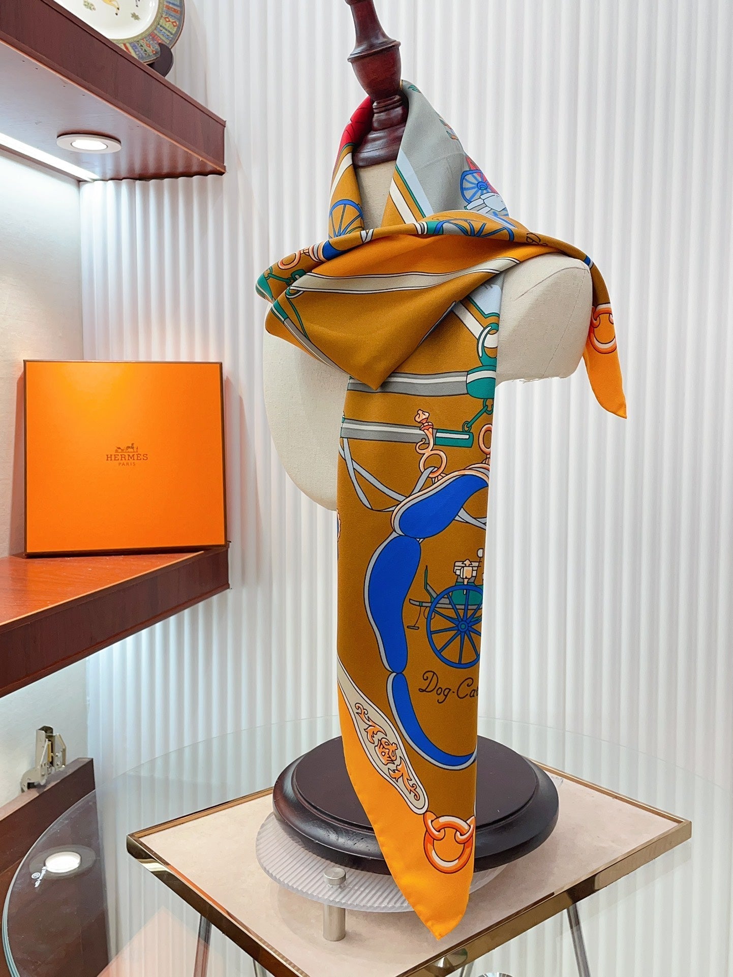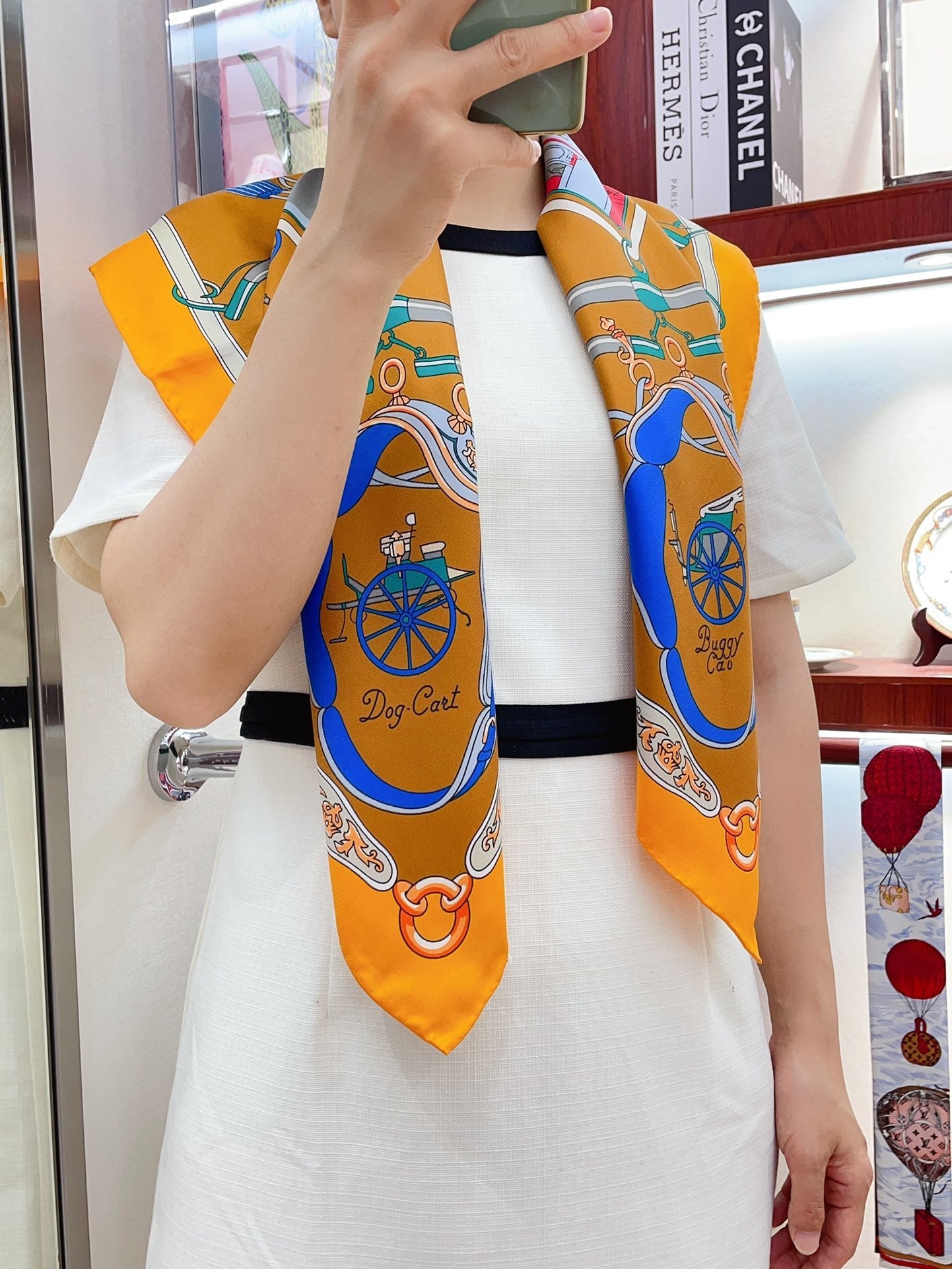 Palonniers scarf 90 CM In Orange Colorful Silk Twill 321910