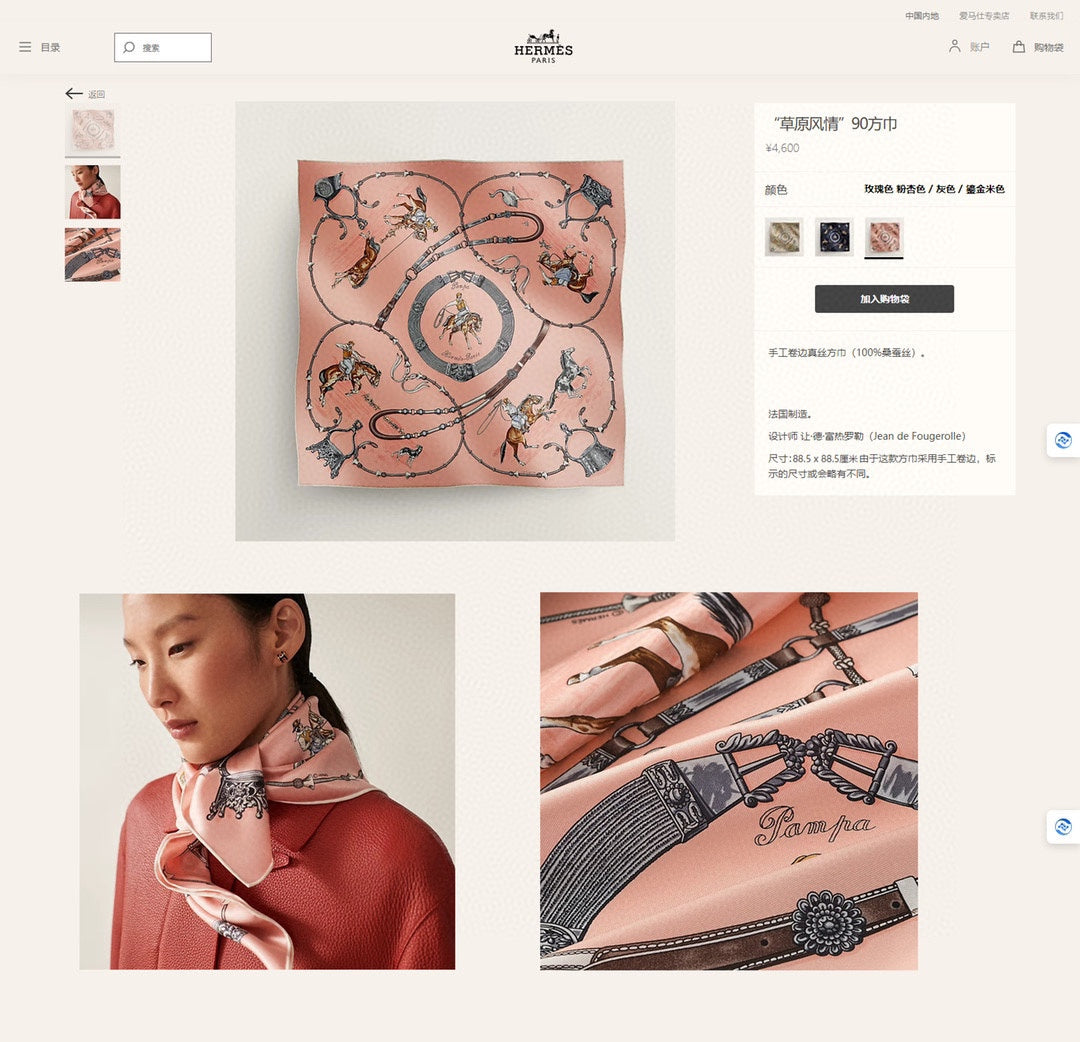 Pampa Scarf 90 CM In Pastel Pink Colorful Silk 196203