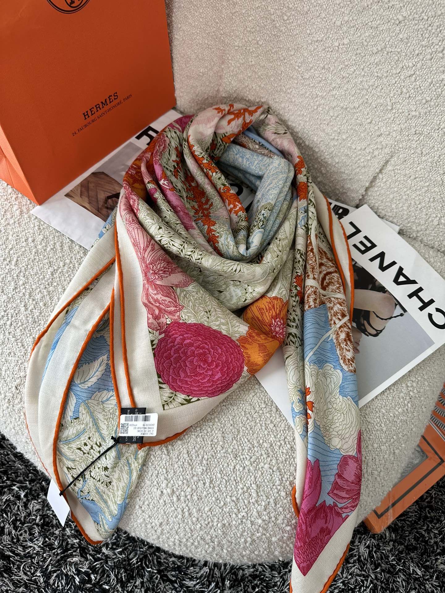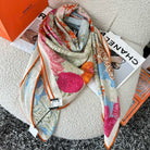Retourala Nature Hermes Scarf 140 CM Green Gray Colorful Silk