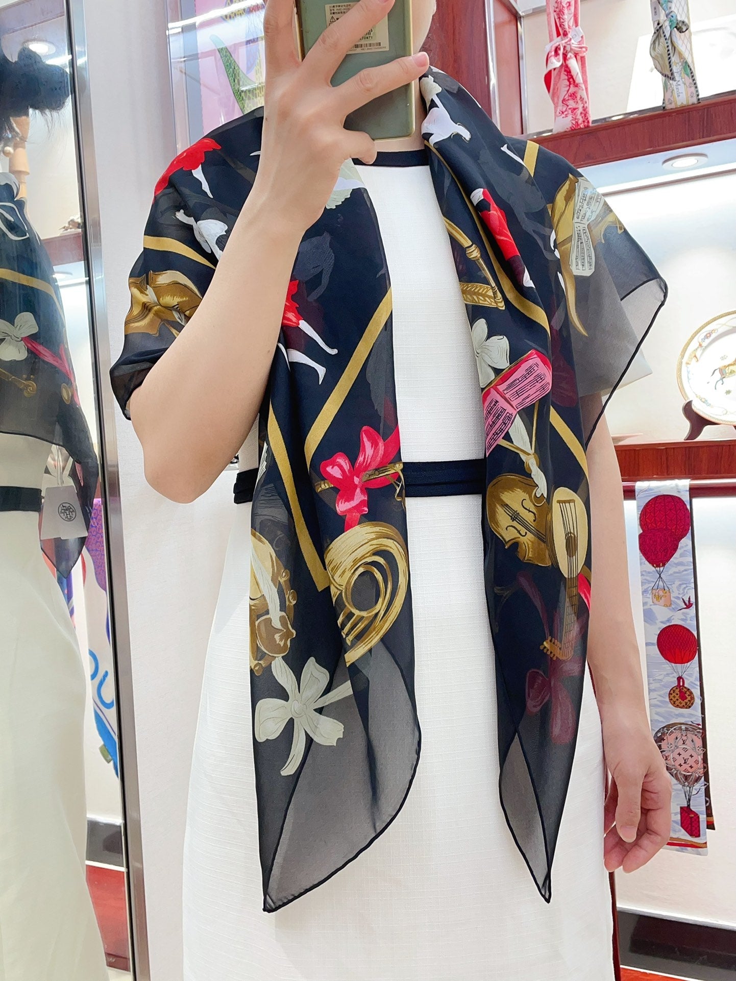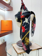 Scarf 110 CM In Black Colorful Voile Silk 193826
