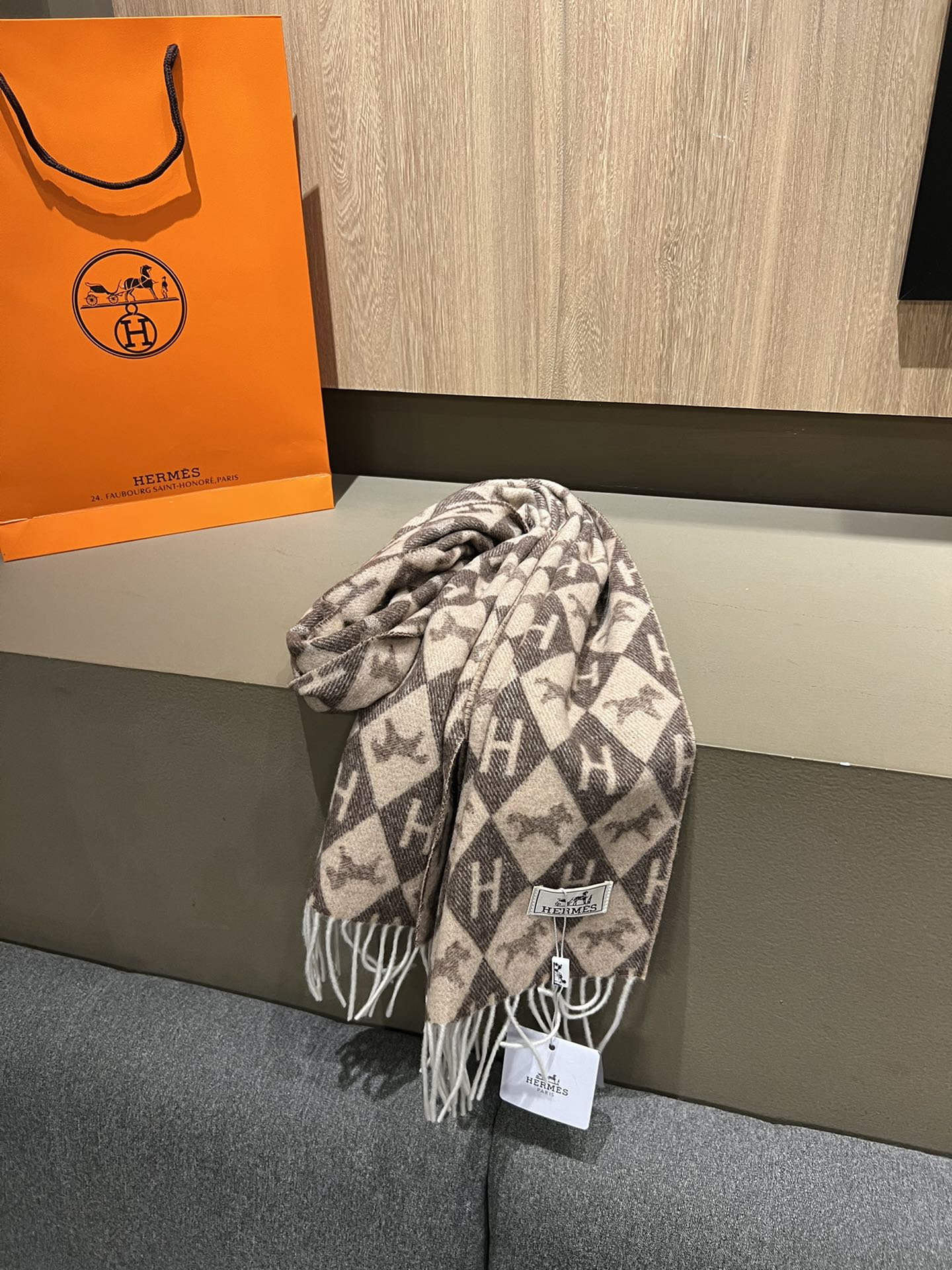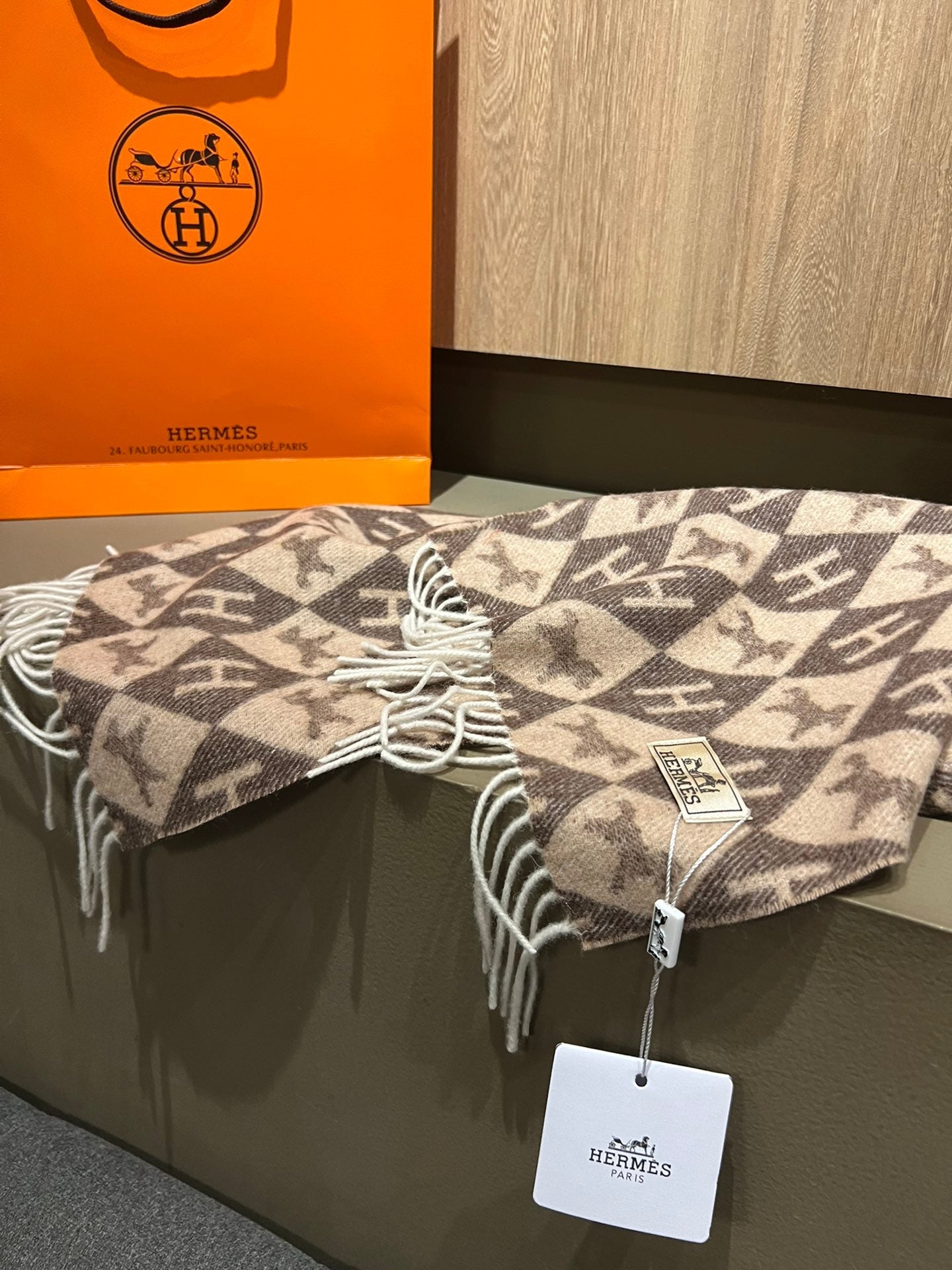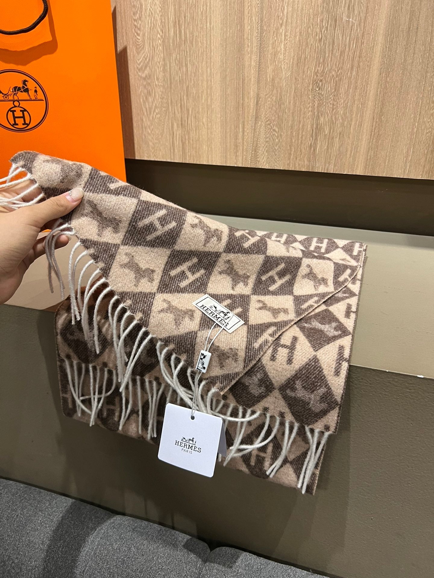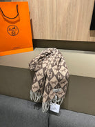 Scarf Cashmere 180 CM In Dark Beige Mix Dark Brown Fine Wool 290425