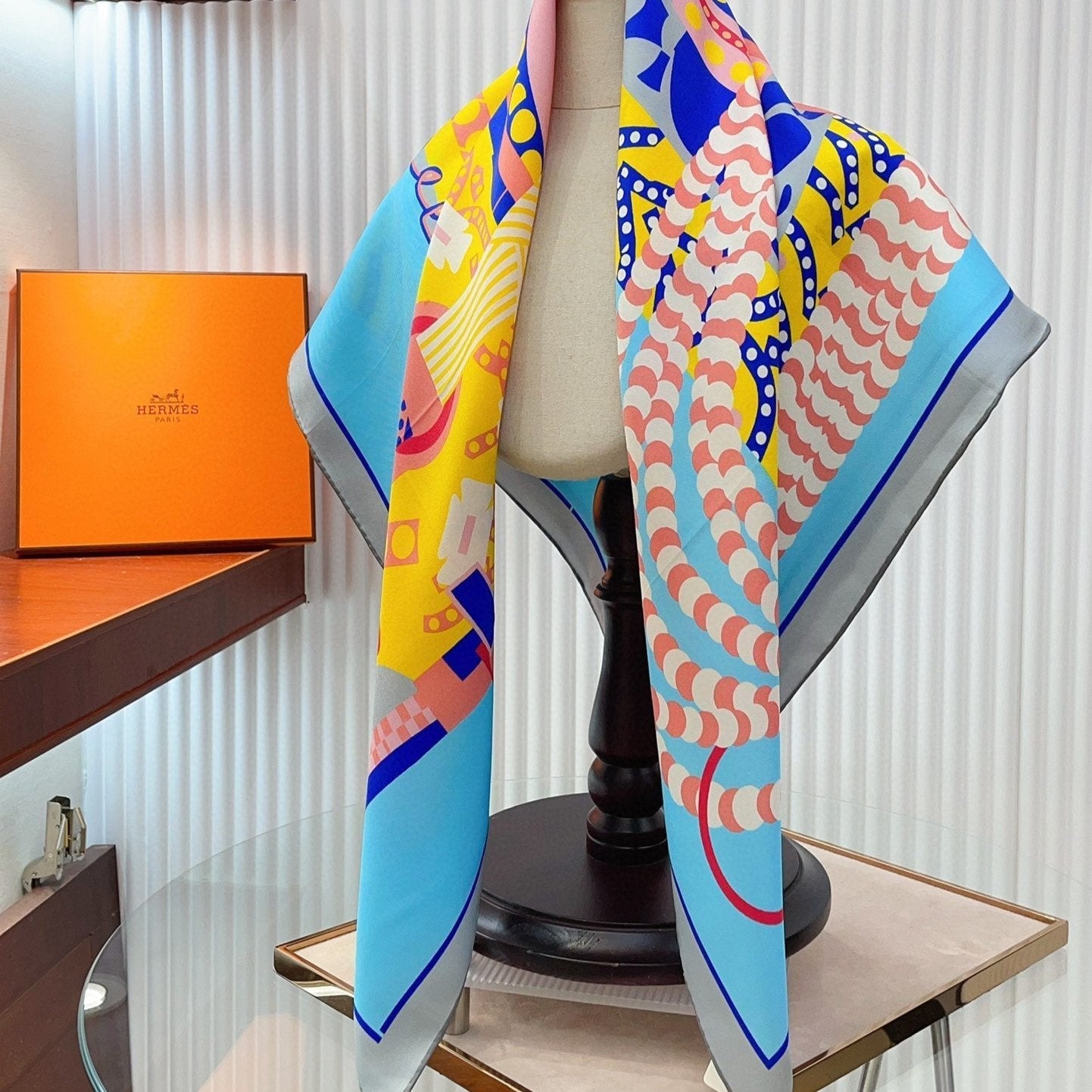 Silla De Gaucho Scarf 90 CM In Light Blue Colorful Silk Twill 231854