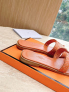 HM 25 Oran Sandal Orange Calfskin Crystal Embellished