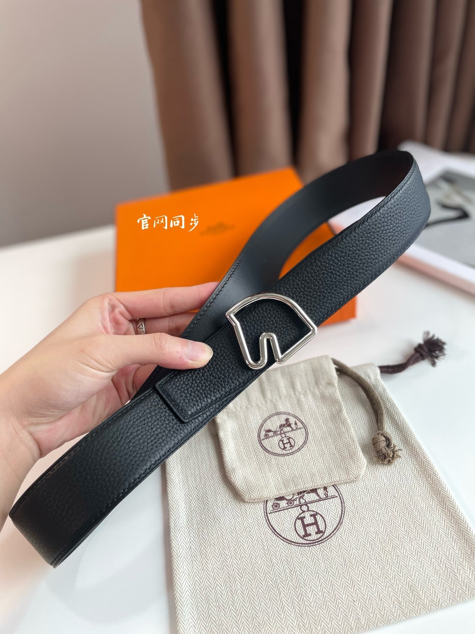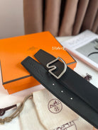 BOUCLE BELT BUCKLE & REVERSIBLE BLACK AND WHITE LEATHER STRAP 38MM SILVER HARDWARE